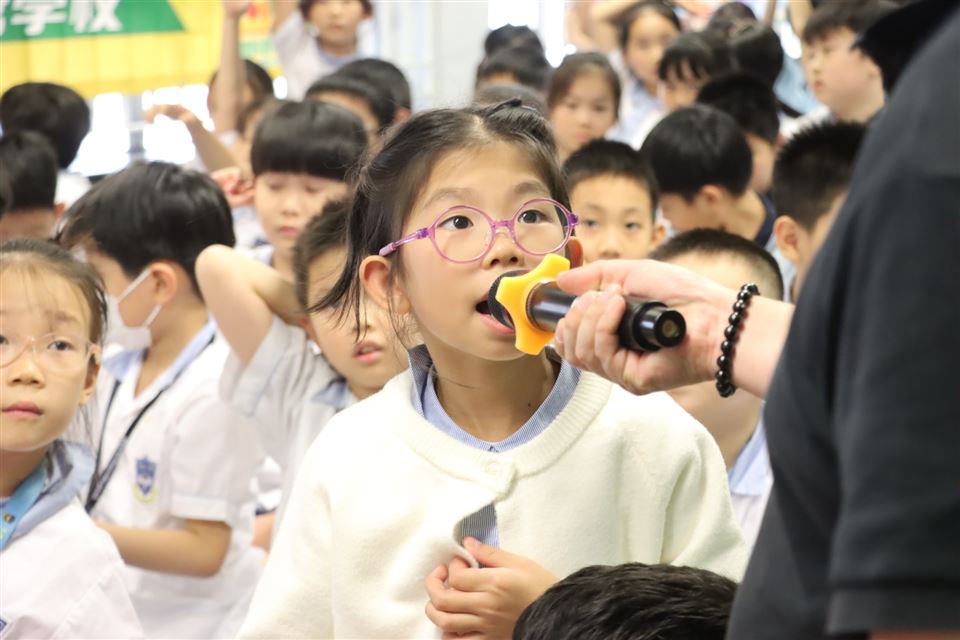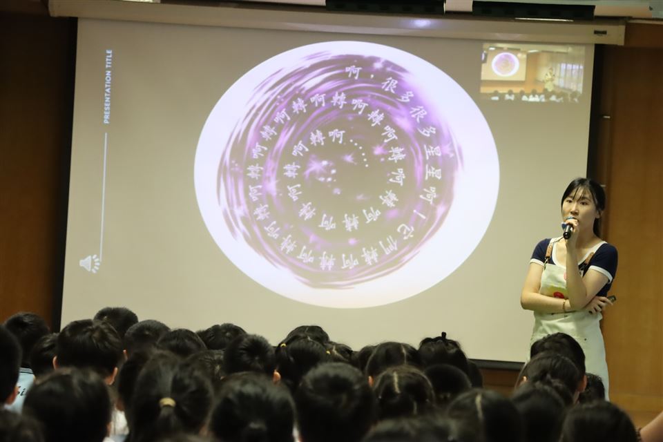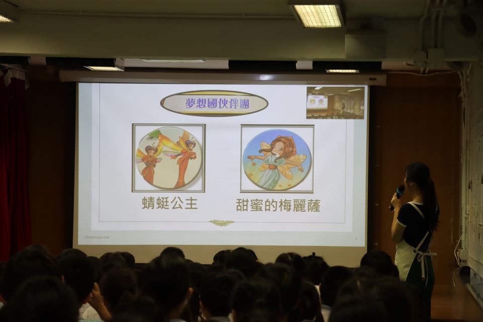 講座由新雅出版社的代表,向同學們分享了這本充滿奇幻與冒險的故事:「老鼠記者謝利連摩」如何勇闖夢想國,如何幫助芙勒迪娜皇后拯救她的好友梅麗薩公主,並對抗可怕的飛天海盜!同學們認真聆聽故事,投入在這個緊張、有趣的情節裡,同學們踴躍回答問題,現場氣氛非常熱烈!