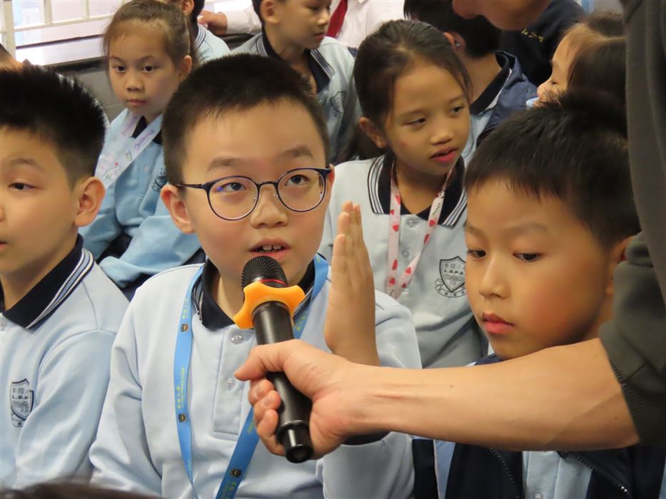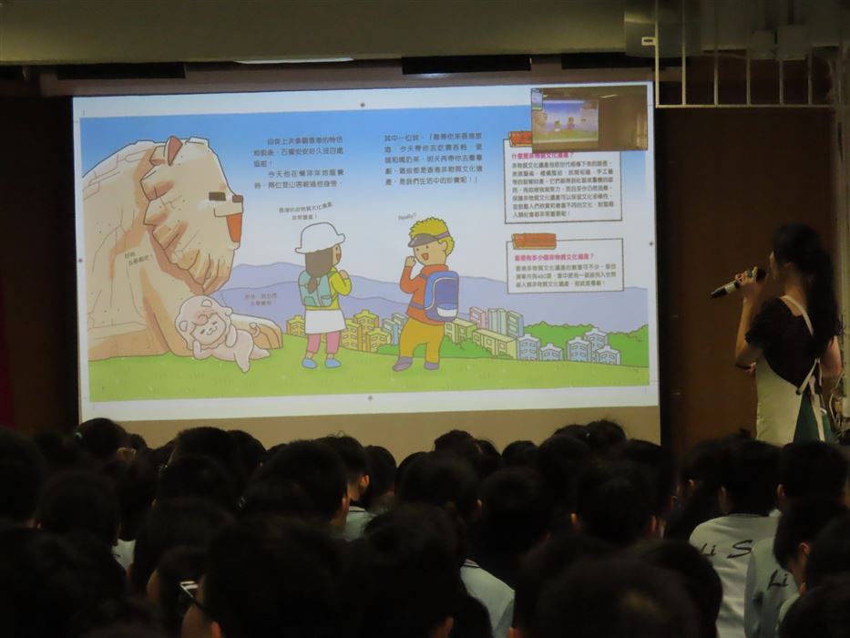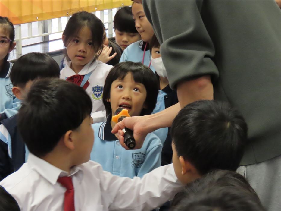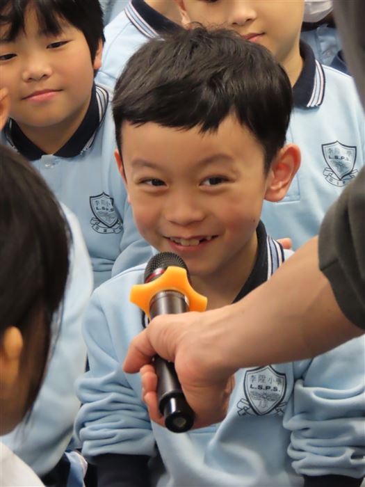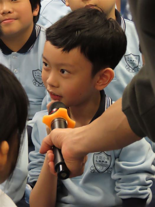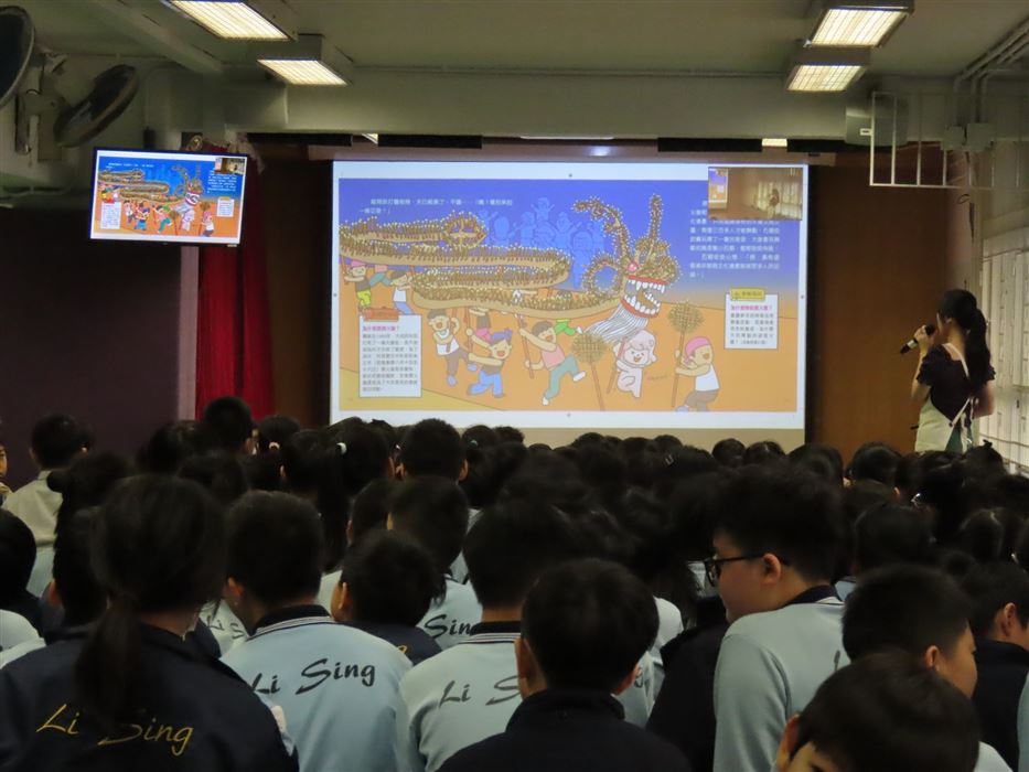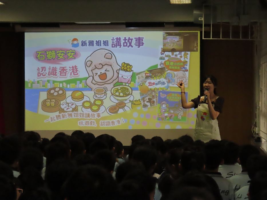 《石獅安安愛遊歷》系列一共有4冊,今次講座由新雅文化事業有限公司的新雅姐姐向同學們分享了這本《2 尋找生活中的珍寶-認識香港非物質文化遺產》。這個故事是講述「石獅安安」喜歡尋寶,他聽說在日常生活之中,原來藏着很多珍寶。粵劇表演、大坑舞火龍、沖泡奶茶……這些都是獨特而珍貴的香港非物質文化遺產,石獅安安真想讓更多人認識它們,於是展開一連串的奇幻旅程。同學們認真聆聽故事,投入在這個有趣的情節裡,而且又踴躍回答問題,現場氣氛非常熱烈!