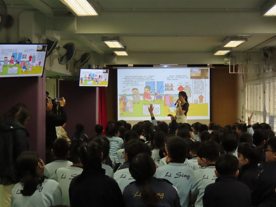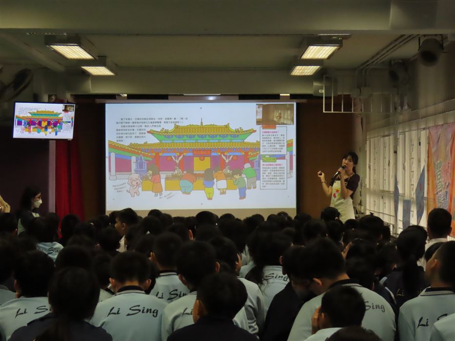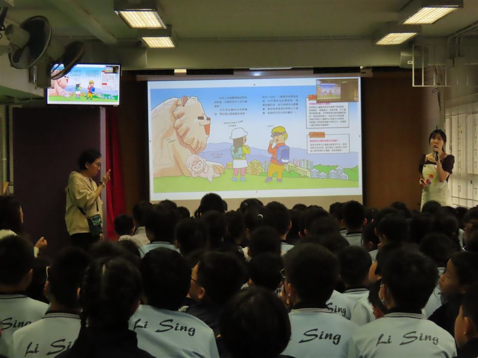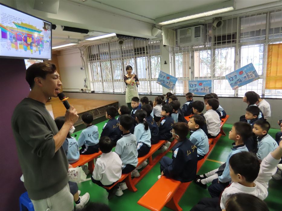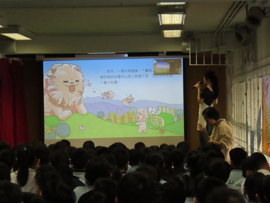 為持續培養學生在課餘時間閱讀課外讀物,培養學生「愛閲讀」的風氣,提升學生學習動機及興趣,促進終身學習能力。本校於2025年11月24日(星期一)舉辦了一場精彩、生動的圖書閱讀講座,主題是《石獅安安》。故事先以一塊從獅子山剝落的小石子——安安為主角,通過他的有趣故事,介紹香港的地貌、香港非物質文化遺產、香港的建築物和植物。