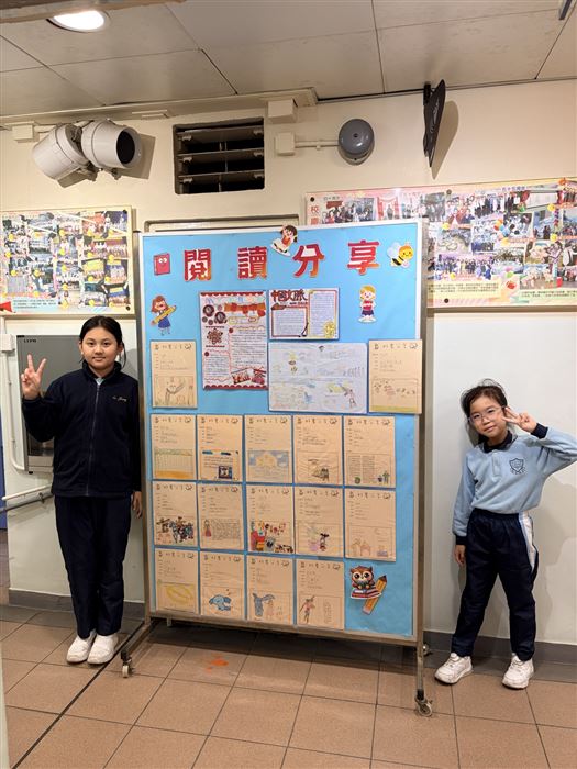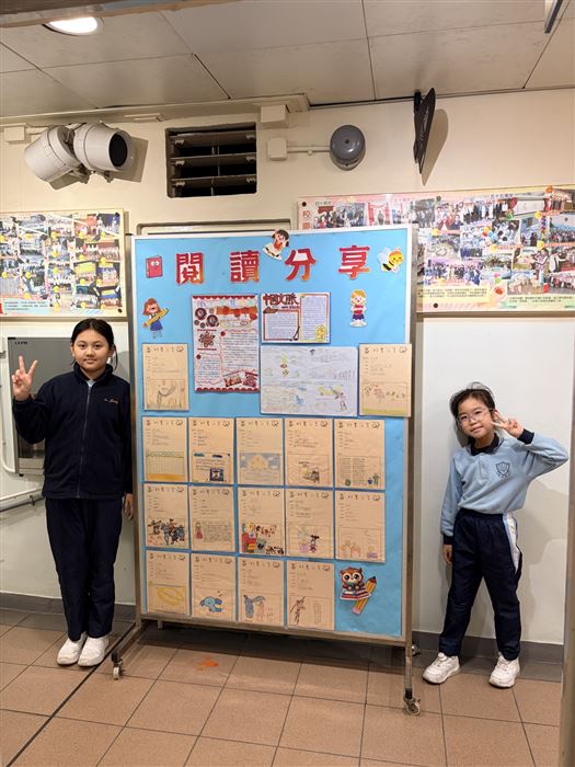 為了營造全校閱讀氛圍,提升學生的閱讀興趣,圖書課老師包括:江偉雄老師、鍾婷芝老師以及李珀蕙老師會全年持續在校內進行不同類型的閱讀分享活動,包括工作紙、製作書籤及《快樂的閱讀週記》,並將學生的佳作展示在每個樓層,讓其他同學欣賞及參考。