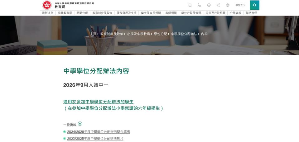 2. 中學學位分配辦法 (2026年9月入讀中一)
