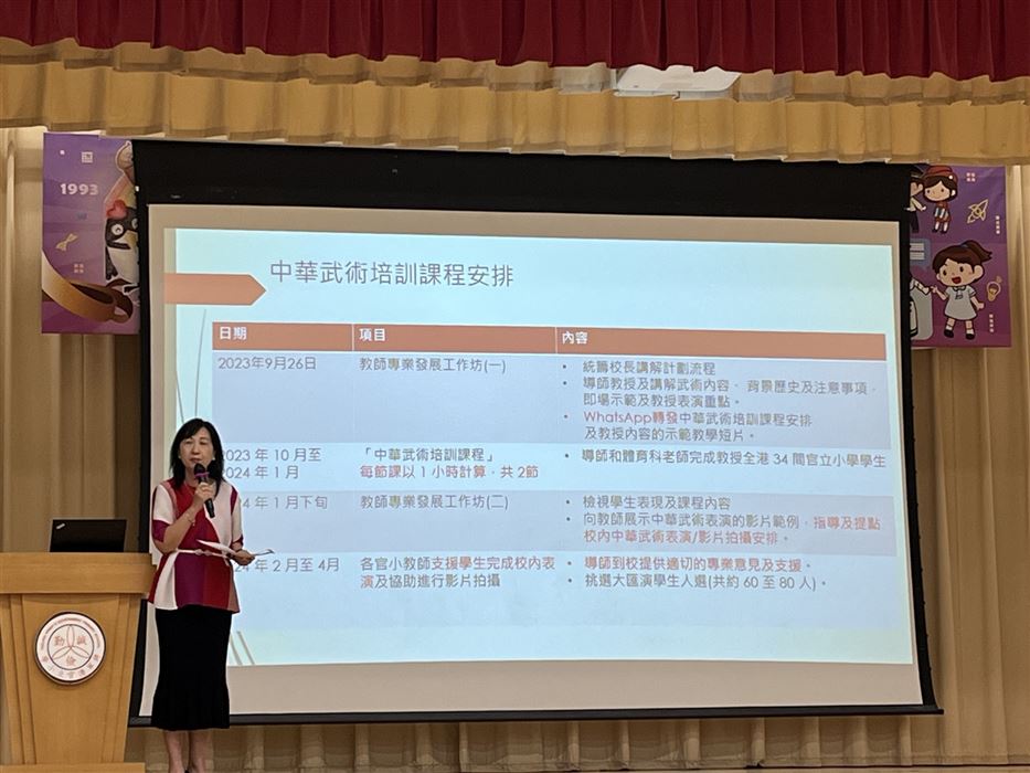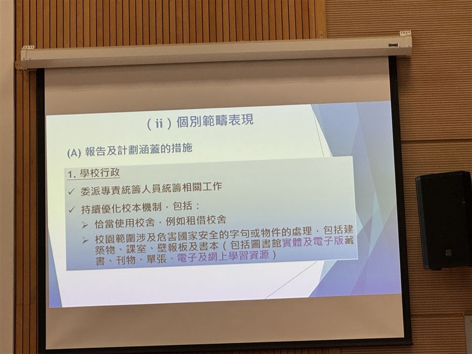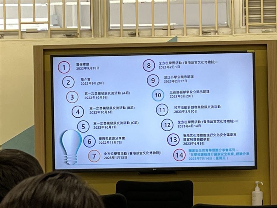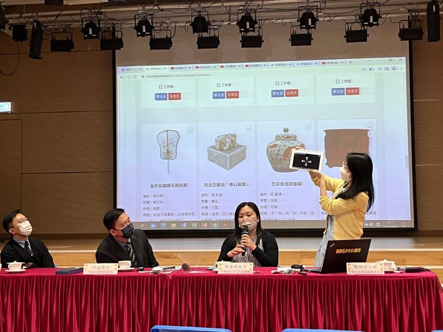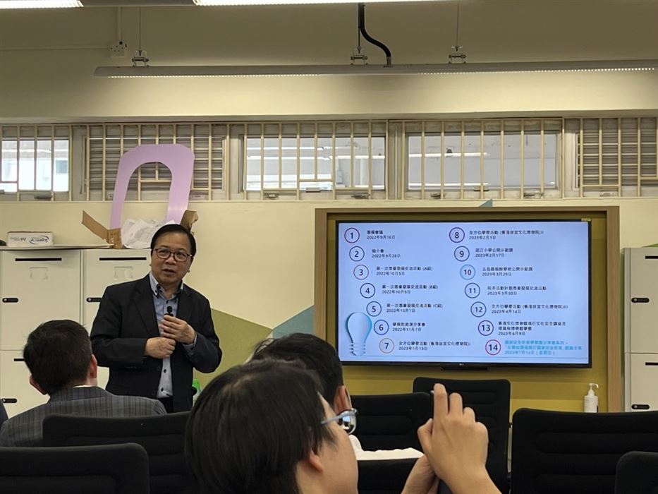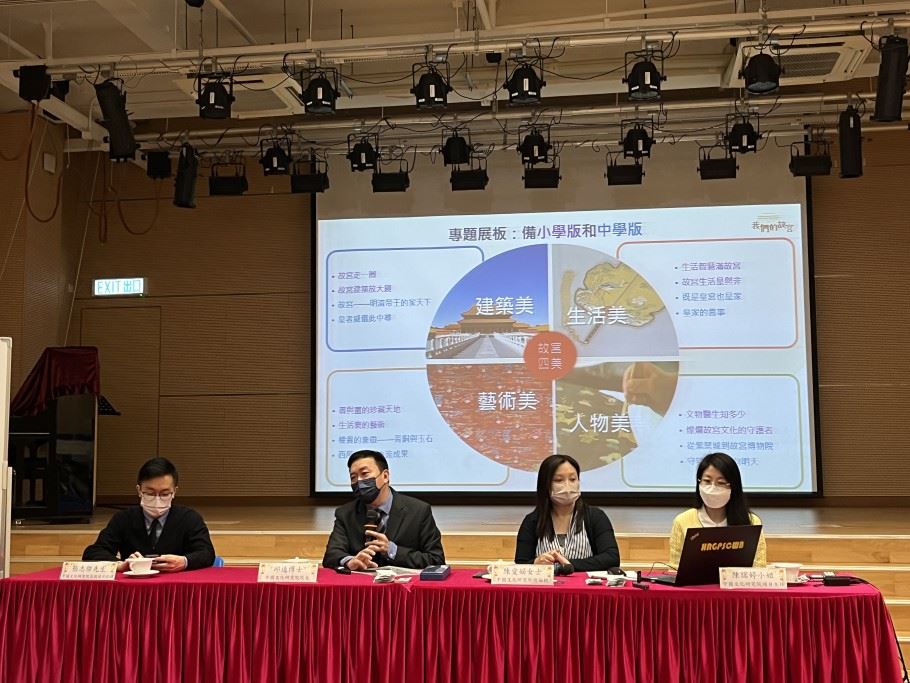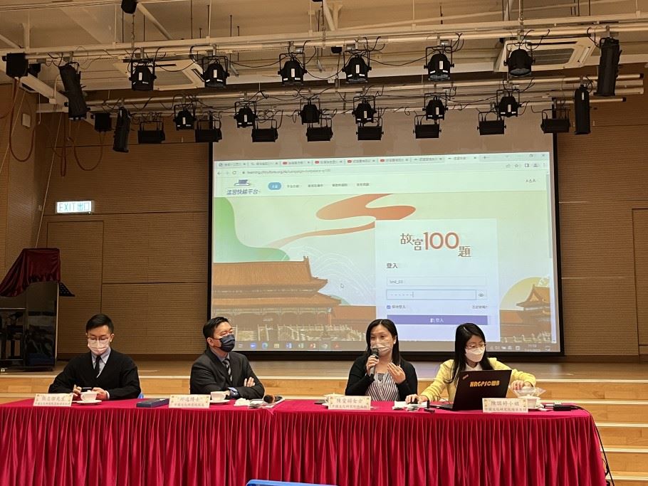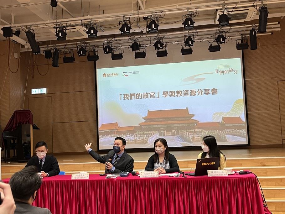 為了培養學生的家國情懷和文化自信,本校的副校長、課程主任、國民教育主任及中文科主任在2022年11月7日出席了「我們的故宮」學與教資源分享會。當天,中國文化研究院推出了「我們的故宮」中小學教材,而且邀請了中國文化研究院院長邱逸博士為官立小學的老師介紹這套學與教資源,並展示教材的內容。