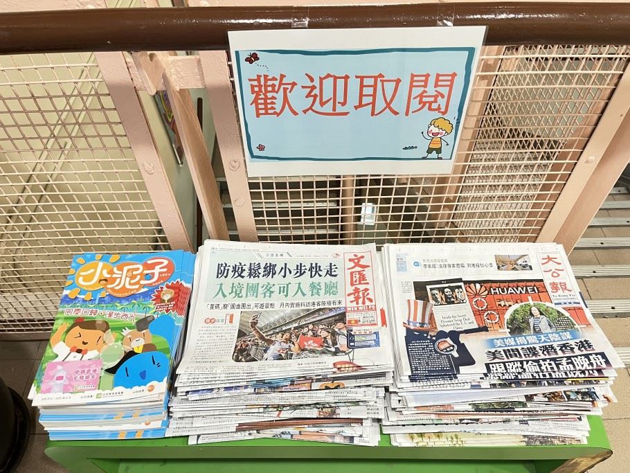 圖書館免費提供文匯報、大公報及小泥子