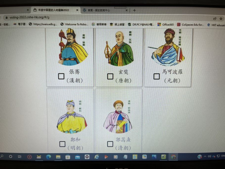 為了讓學生瞭解到中國歷史人物對國家及社會文化的貢獻,提升其學習國史的興趣,培養學生對國家民族的認同,我們在2022年11月7日 - 2022年11月21日舉辦了中國歷史人物選舉。
