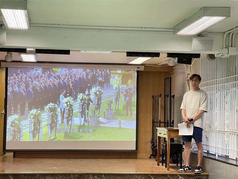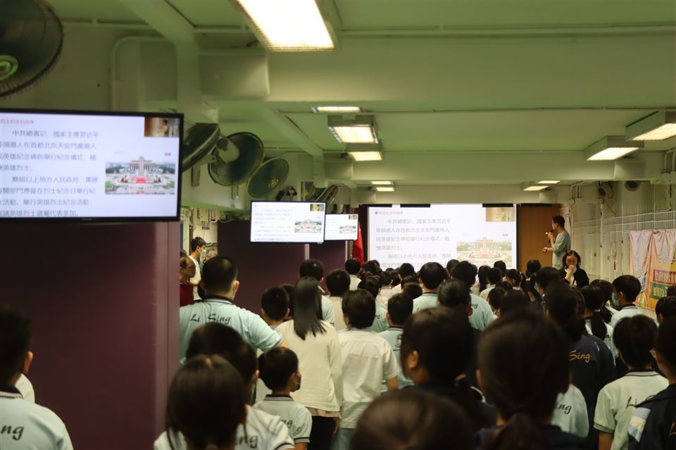 為讓學生認識「中國人民抗日戰爭勝利紀念日」的由來,本校於9月3日舉行升旗禮儀式,並進行國旗下講話,紀念中國人民抗日戰爭暨世界反法西斯戰爭勝利 80 周年。