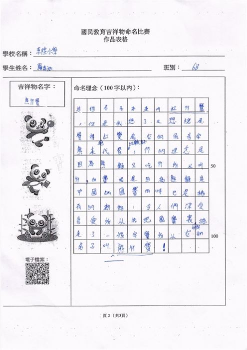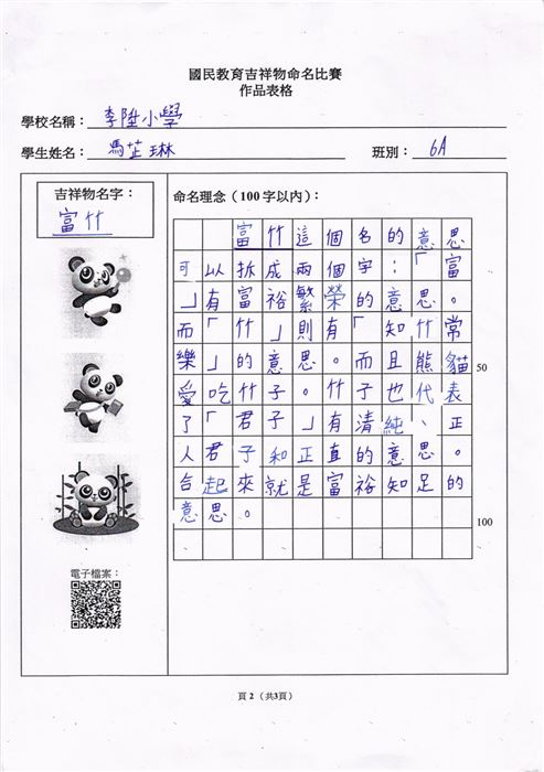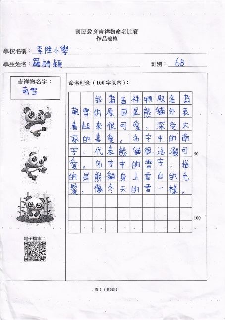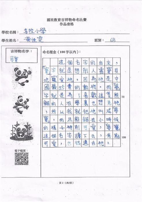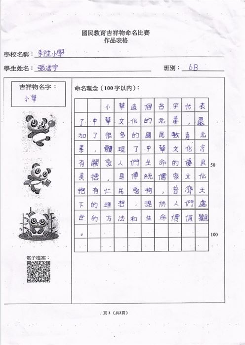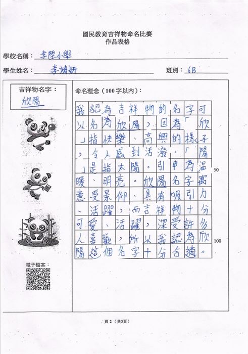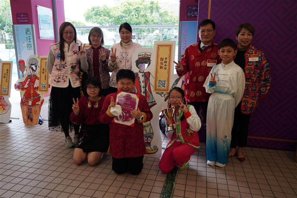 本校的參賽作品為「保安族服飾設計」,而獲獎的學生包括有5A巴帆、5A梁逸喬、5B李馨潼以及5B柯伽倻。曾校長、余副校長、張主任及曾老師與獲獎學生一同出席頒獎典禮。