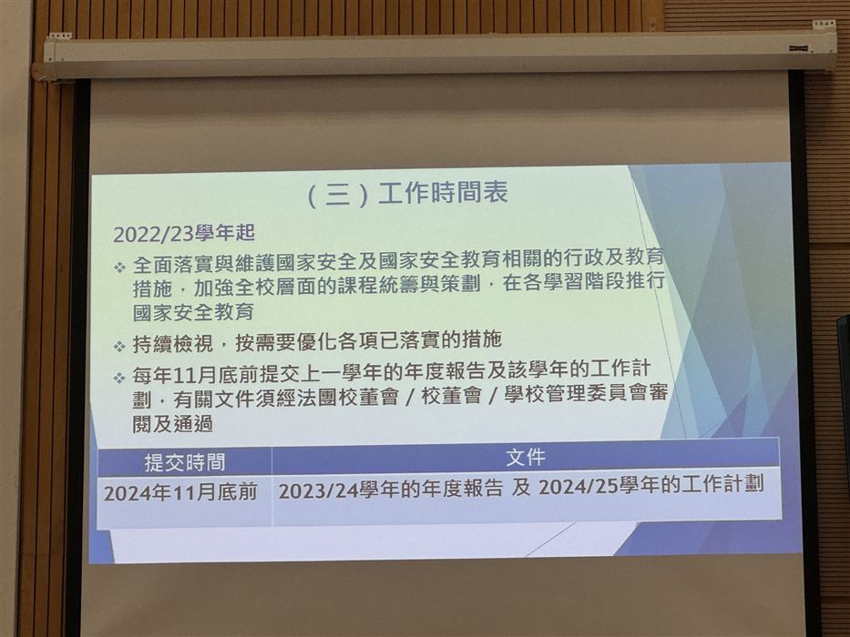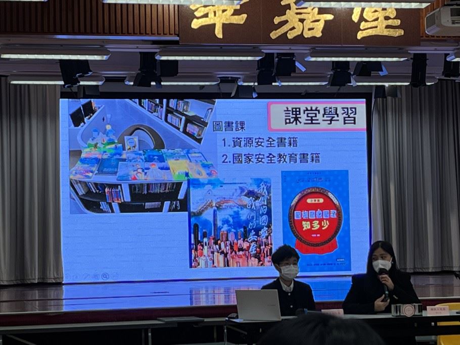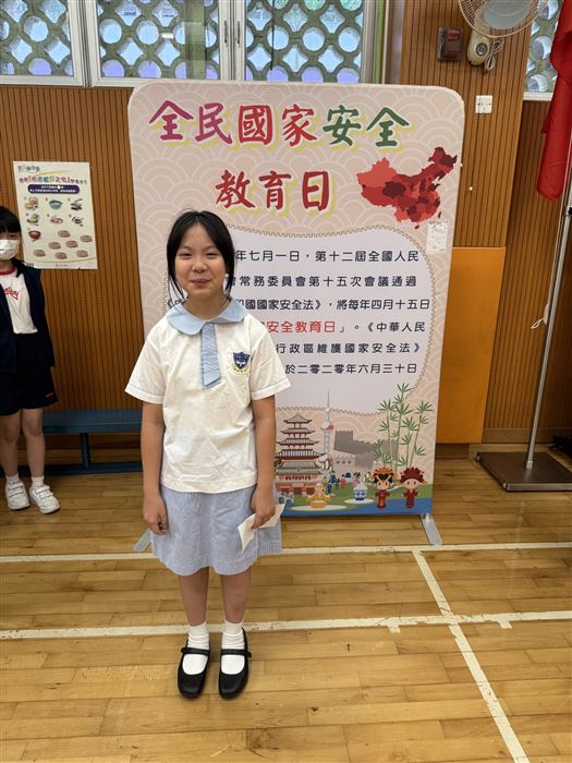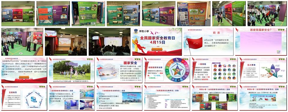 每年的4月15日為「全民國家安全教育日」,為了讓學生對國家安全有更深入的認識,加強認識法治和國情,明白維護國家安全的重要性,本校於4月19日舉行了「全民國家安全教育日」國旗下講話。除此之外,禮堂還設有國家安全教育展板,增加學生對國家安全的理解,而每位學生都會獲得一份「全民國家安全教育日」紀念品。