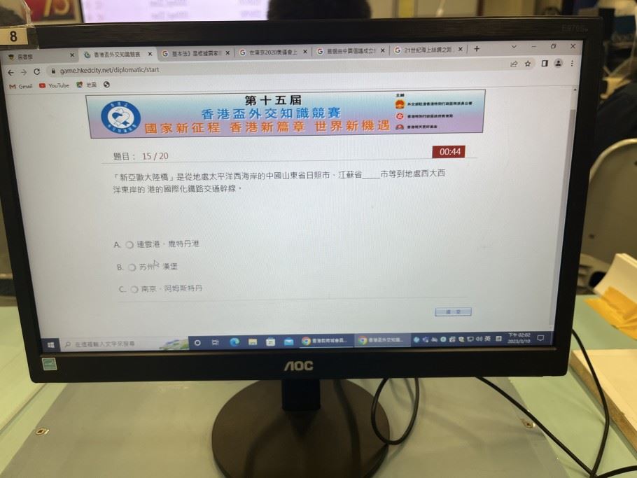 為了提升學生對世界格局和國際關係變化的興趣,體會外交對世界、國家和香港的重要性,促進學生全面認識《外交知識》,我們在2023年3月1日(星期三)至3月14日(星期二)舉辦了《第十五屆香港盃外交知識競賽》。透過比賽,小四至小六學生可以了解國家國情、歷史、文化,特別是新時代各項事業取得的重大進展成就以及發展方向。亦能了解香港回歸26年來發展歷程和前景,增加對國家《憲法》、《基本法》、《香港國安法》以及改革香港選舉制度重要作用的認識,感知香港參與粵港澳大灣區建設等國家戰略的重大意義。
