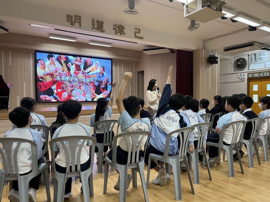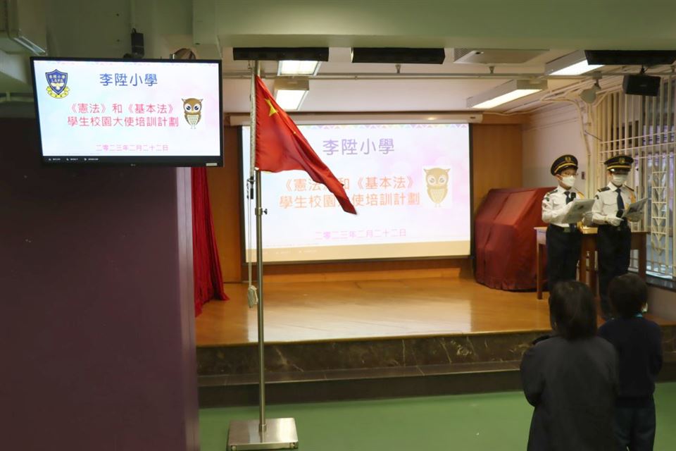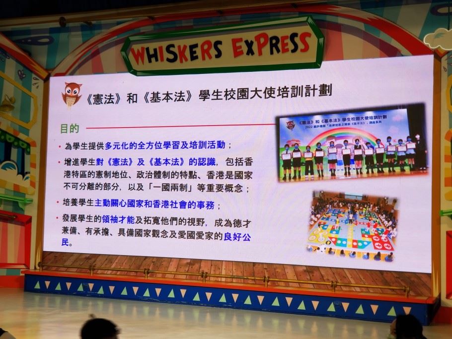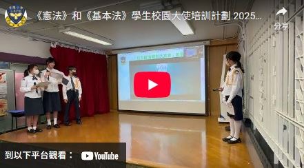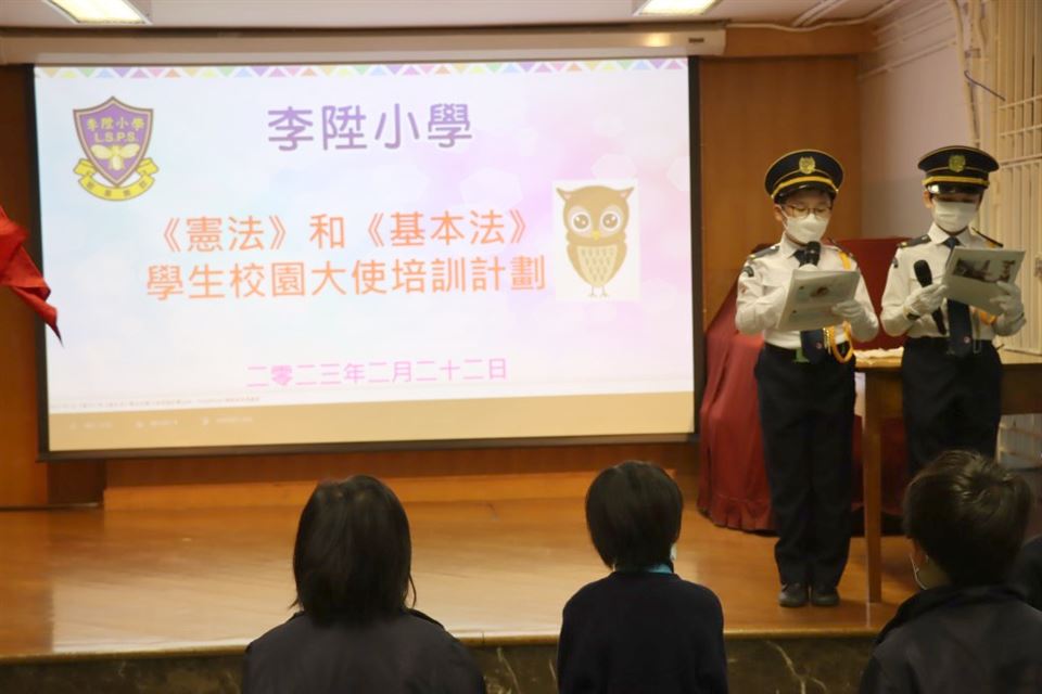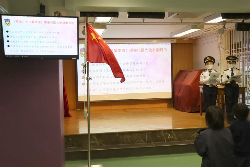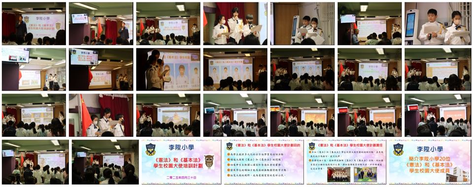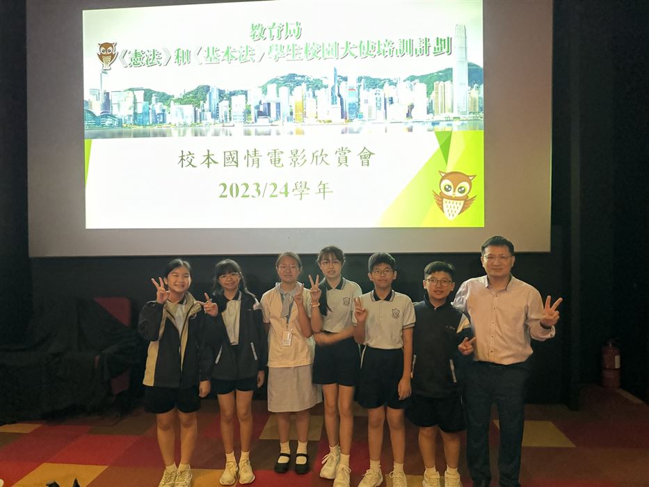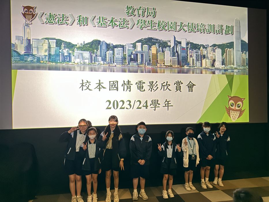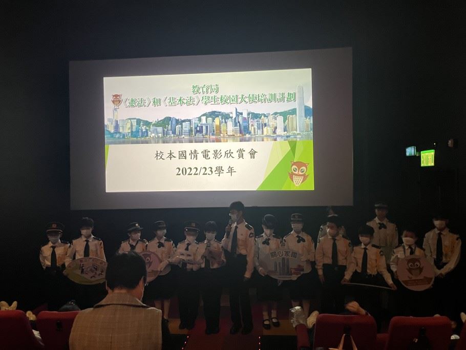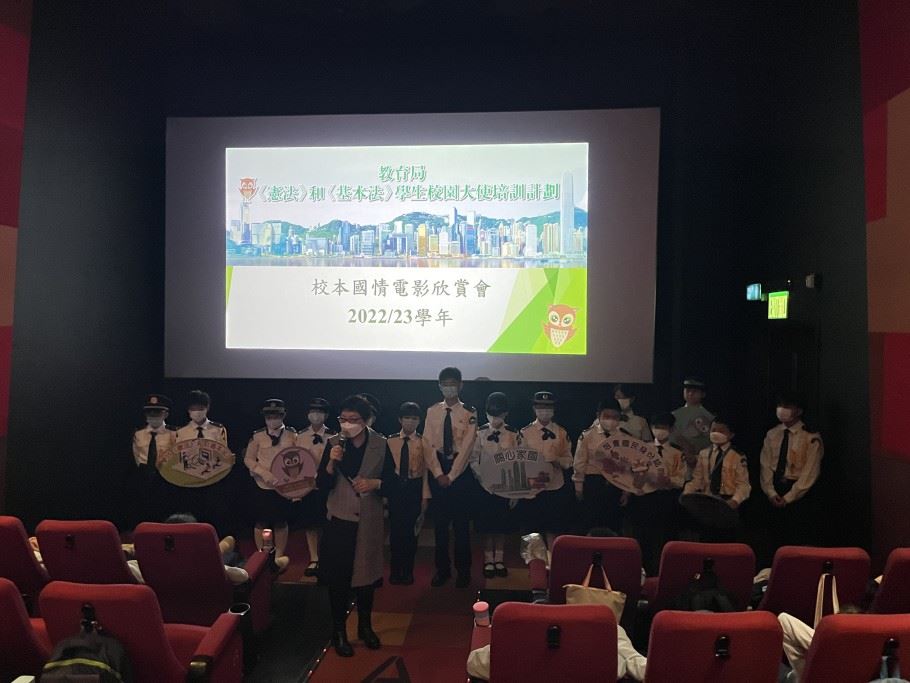 為加深學生對國家歷史及國情的認識,以及增進學生對國家的歸屬感,本校參加了《憲法》和《基本法》學生校園大使培訓計劃。是項活動讓學生以全方位學習的形式,欣賞國情電影,提升學生對國家的認識。是次活動特意安排給四至六年級學生參加,費用全免。活動前還有《憲法》和《基本法》學生校園大使在2023年2月22日(星期三)早會上向同學這講解活動的內容。