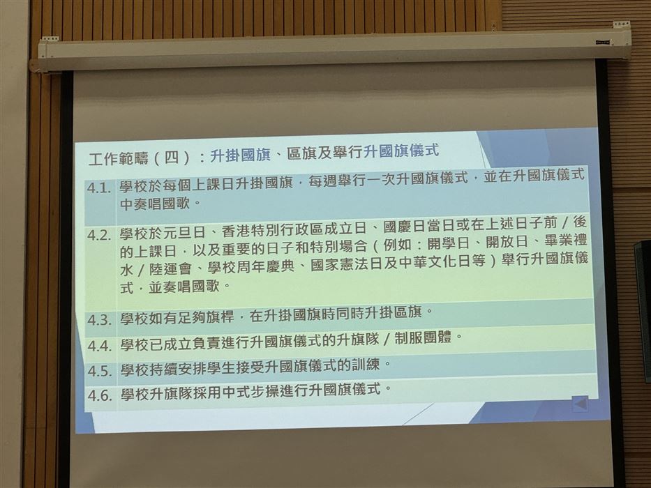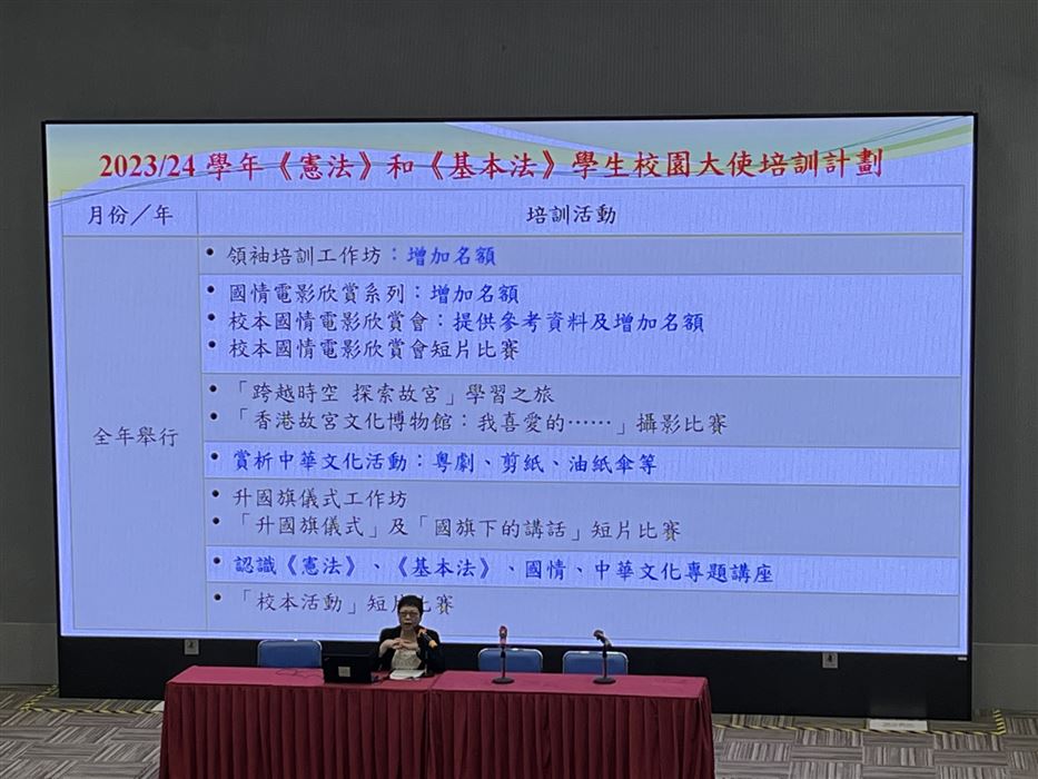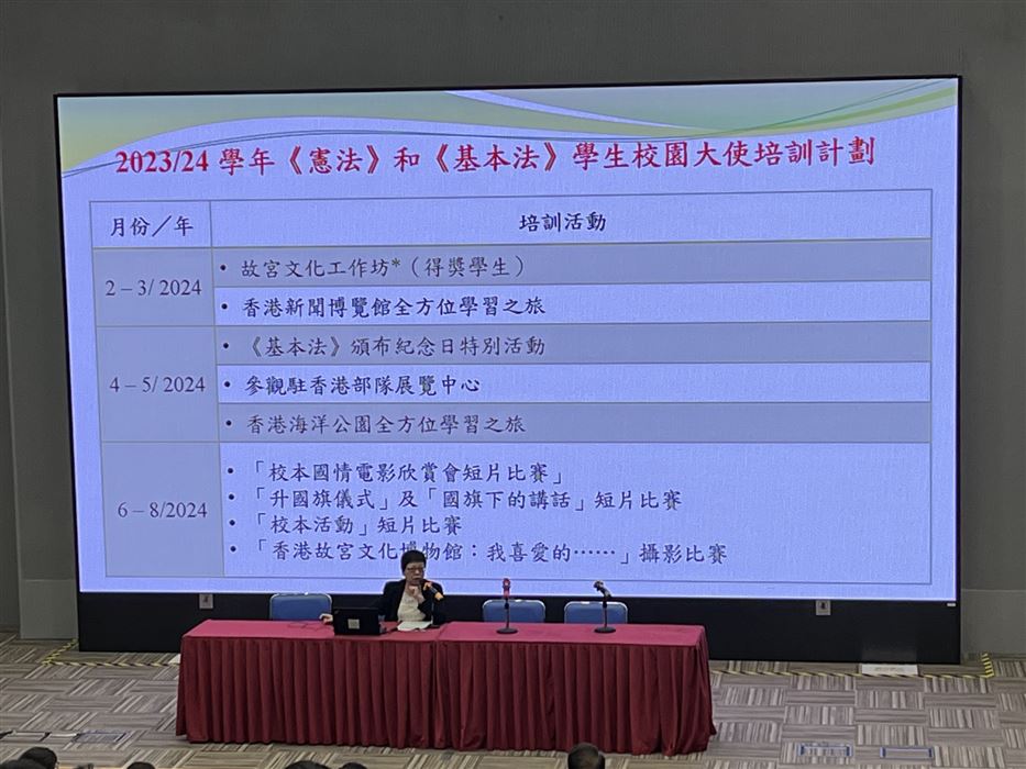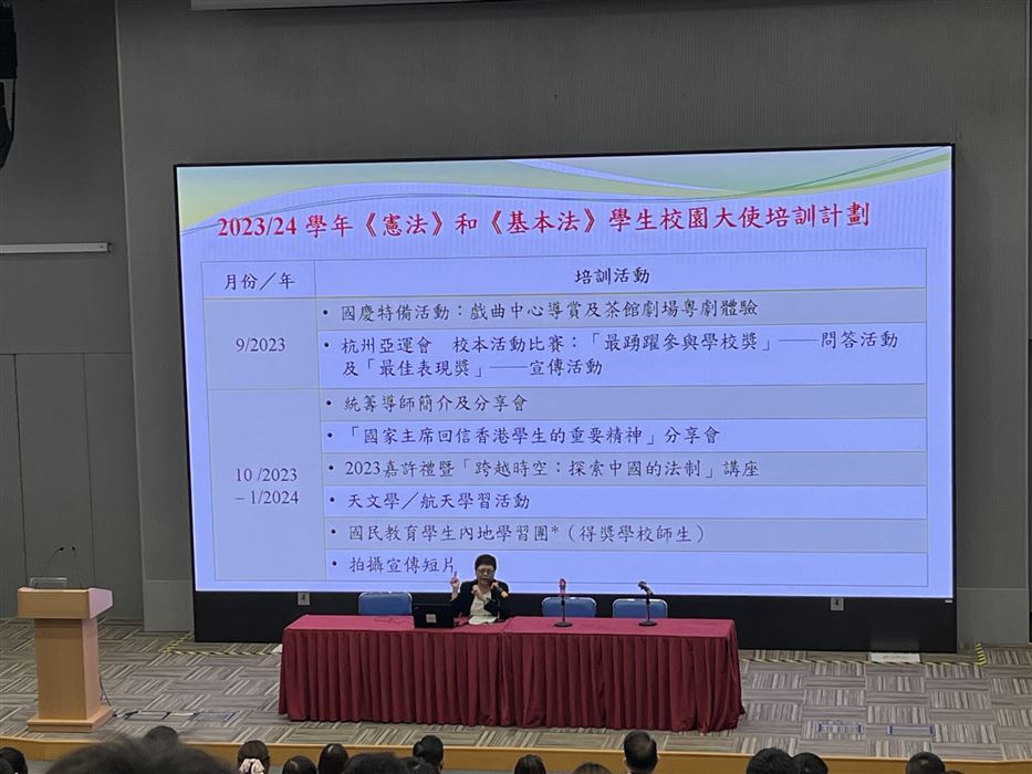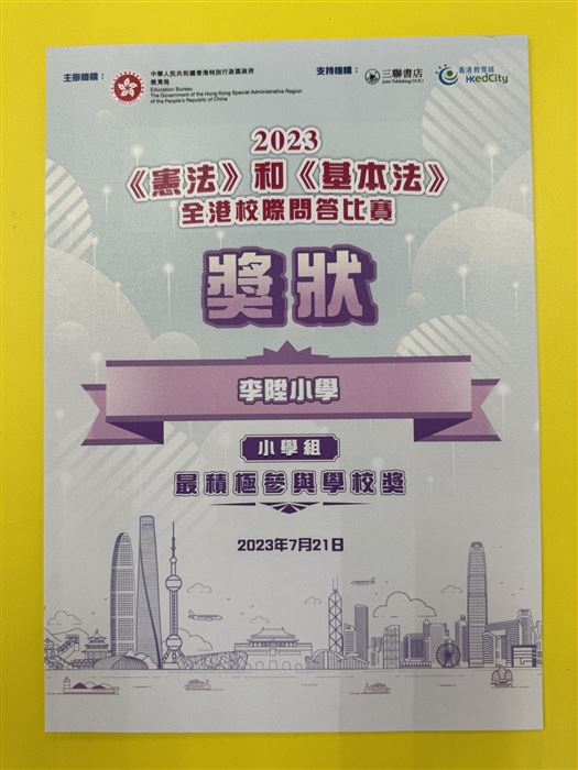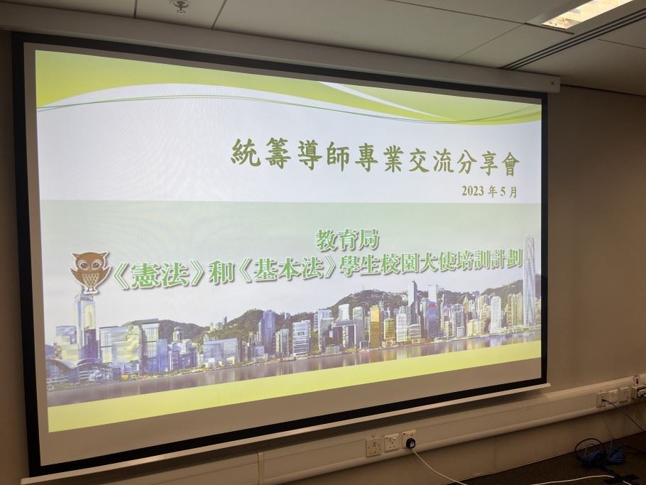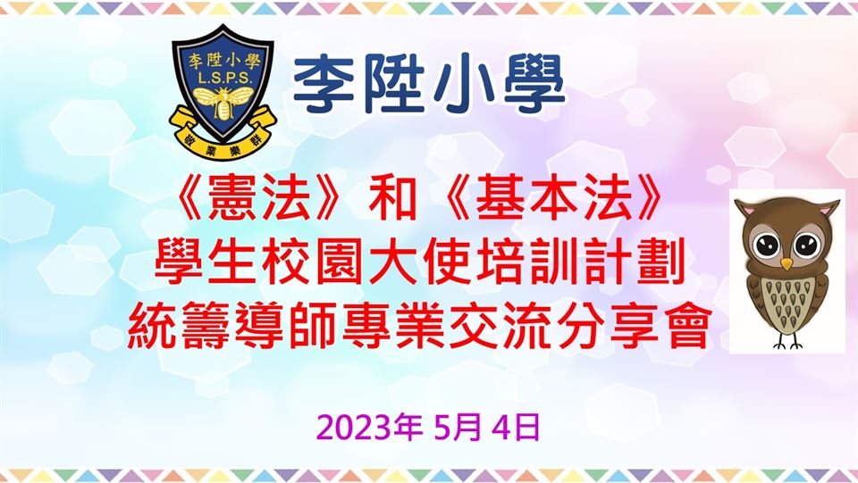 2023年5月4日,本校的國民教育主任獲教育局公民及國民教育組邀請出席《憲法》和《基本法》學生校園大使培訓計劃統籌導師專業交流分享會,分享李陞小學本年度的國民教育活動。
