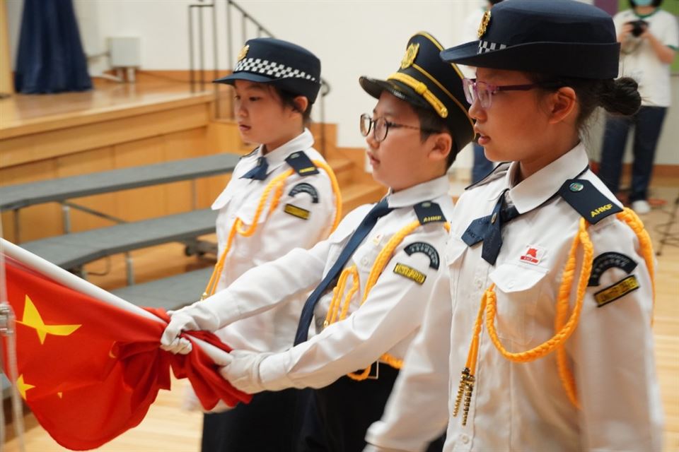 為了慶祝國慶日,我們的升旗隊在周會進行了升旗儀式。