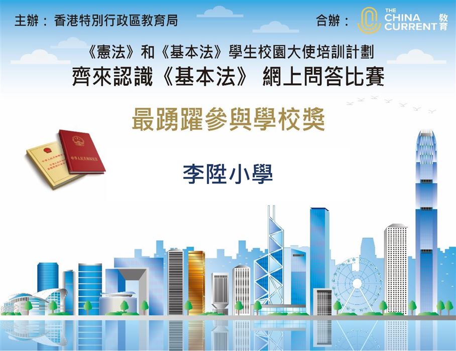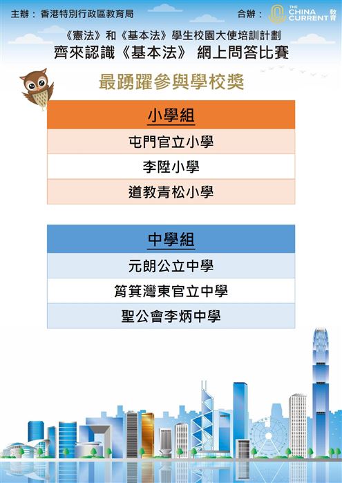 為了加深《憲法》和《基本法》學生校園 大使認識《基本法》和日常生活的關係,以協助教師在學校推廣《憲法》 及《基本法》教育。The China Current教育頻道與教育局合辦《憲法》和《基本法》學生校園大使培訓計劃——「齊來認識《基本法》 問答設計比賽」。
