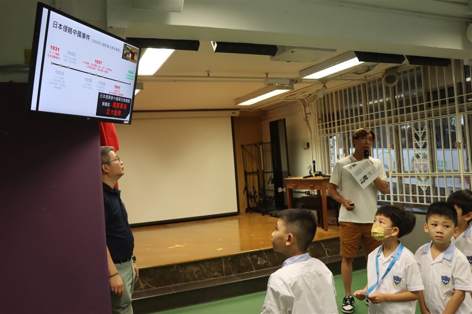 為加深學生對國家歷史及國情的認識,以及增進學生對國家的歸屬感,本校於10月6、9、13日安排四至六年級教育性參觀「香港賽馬會呈獻系列:萬眾一心維護和平─紀念抗戰勝利八十周年展覽」,由導賞員帶領學生進行參觀,認識中國人民抗日戰爭的始末、中國共產黨在抗戰的中流砥柱角色、香港在全民族抗戰的重要角色,以及中國戰場與世界反法西斯戰場聯為一體的意義,表現出中華民族萬眾一心、同仇敵愾的抗戰精神,對終結戰爭和維護和平做出了重大貢獻。