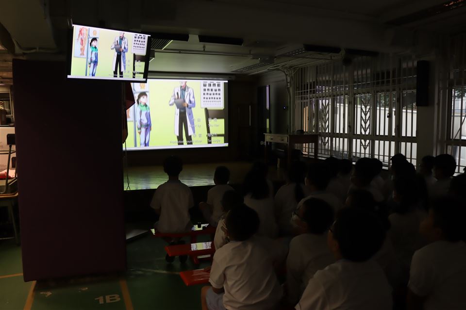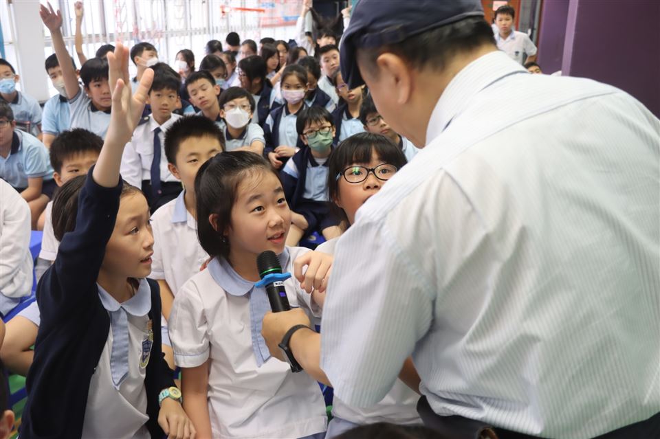 江老師在開始講故事前,詢問學生們曾否去過旅行,大家紛紛告訴老師自己去過的地方。江老師以繪本主角「1868大使——阿邦」與朋友小森、小悠的旅程為主線,講述他們在旅行中遇到的各種情境,如遺失旅行證件、意外受傷等,以分享外遊安全小貼士,讓孩子從小學習旅行中遇到困難的應對方式,並以有獎問答形式與學生親切互動。