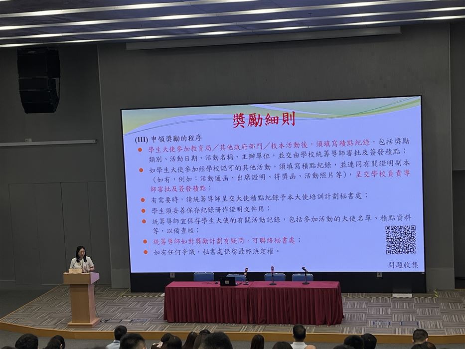 為持續推動國家安全教育,提升學生對立法會換屆選舉制度及立法會的認識,進而增強他們對國家的歸屬感,本校的江偉雄老師和王倩衡老師在2025年11月26日(星期三)周會時段舉行了一個「認識選舉制度及我們的立法會」講座,藉此幫助學生了解立法會的組成、職能及工作。