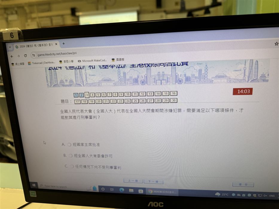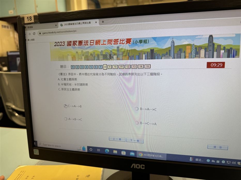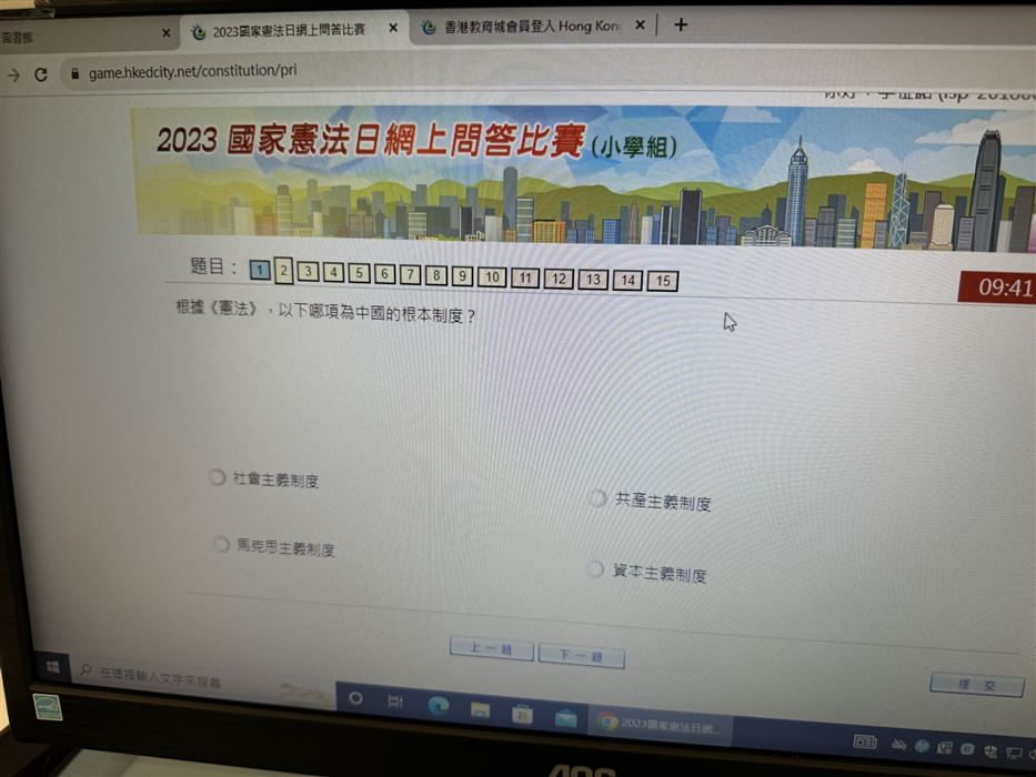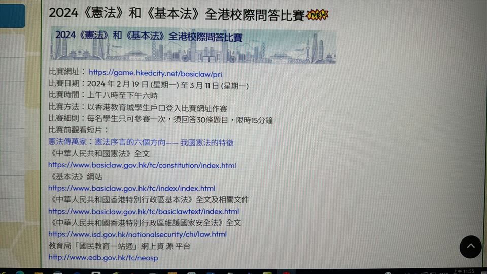 為了提升學生對《憲法》、《基本法》及國家安全的認識,包括「一國兩制」等重要概念的認識、《基本法》的由來及憲法精神、國家安全的概念和範疇,我們在2023年2月9日(星期四)至2023年2月28日(星期二)的圖書課日舉辦了《憲法》和《基本法》全港校際問答比賽,每位學生都有參加的機會。