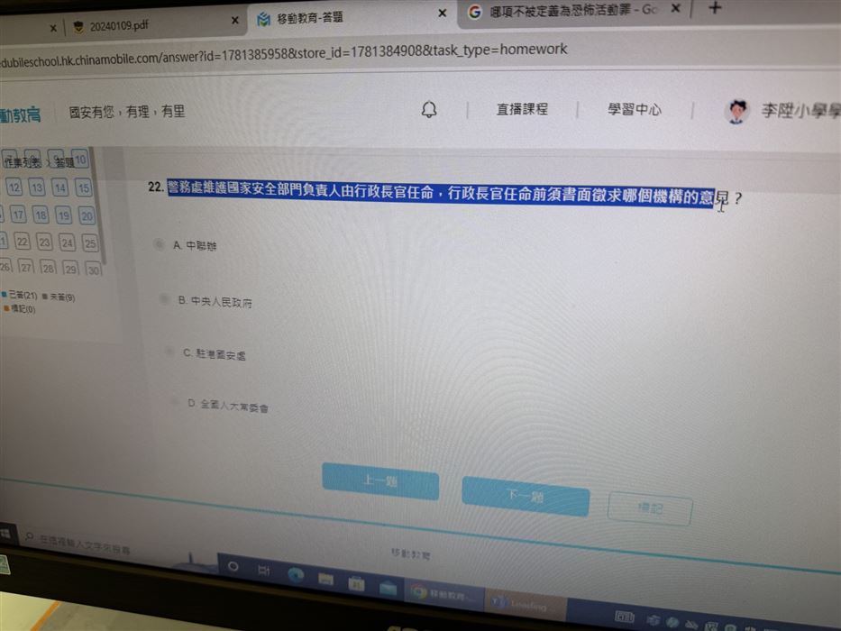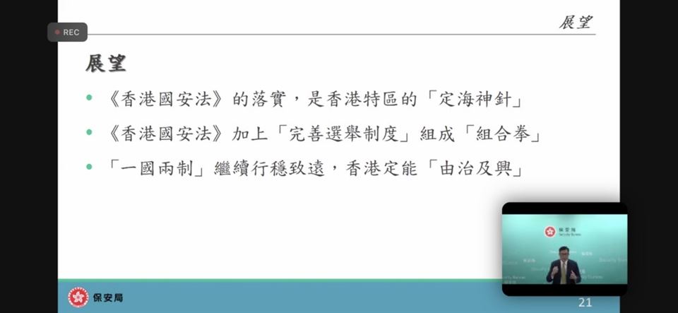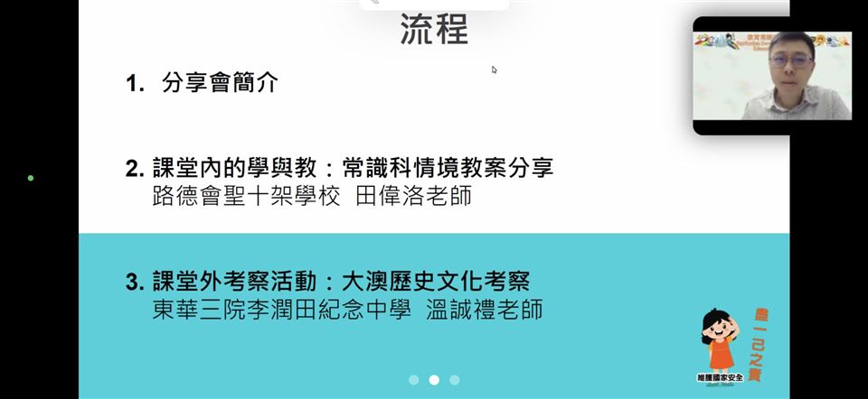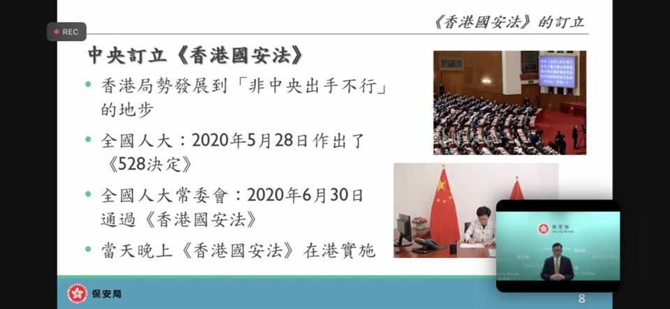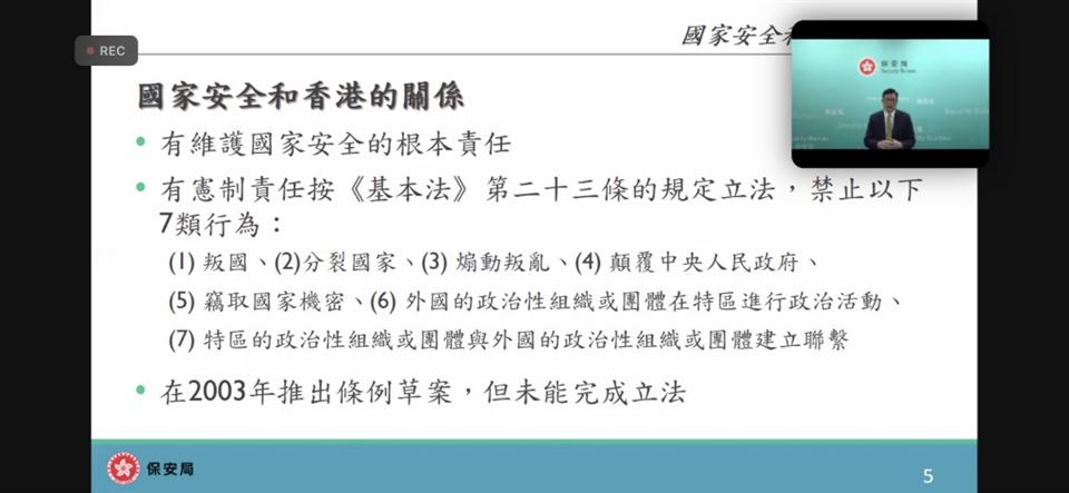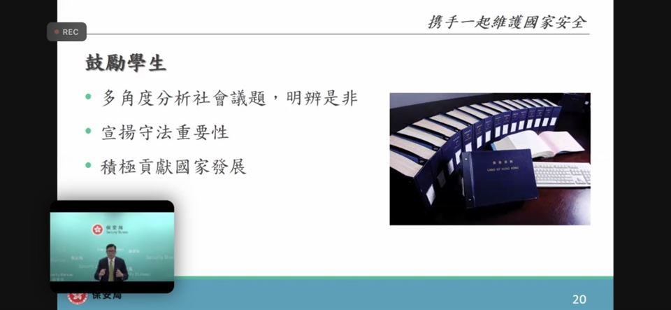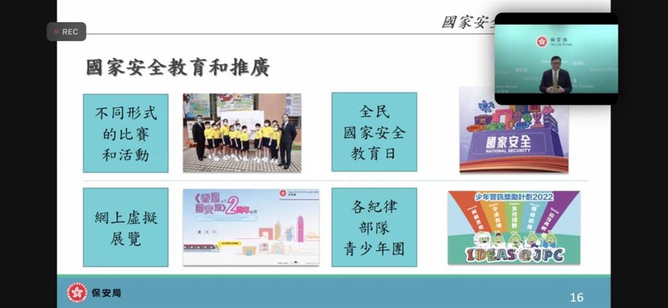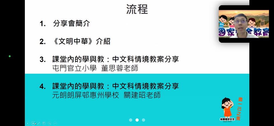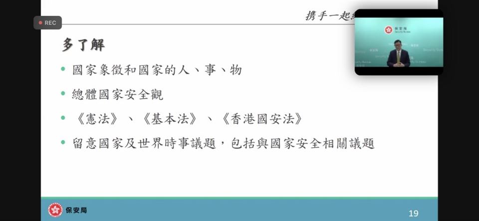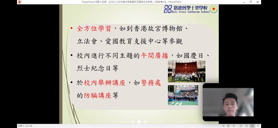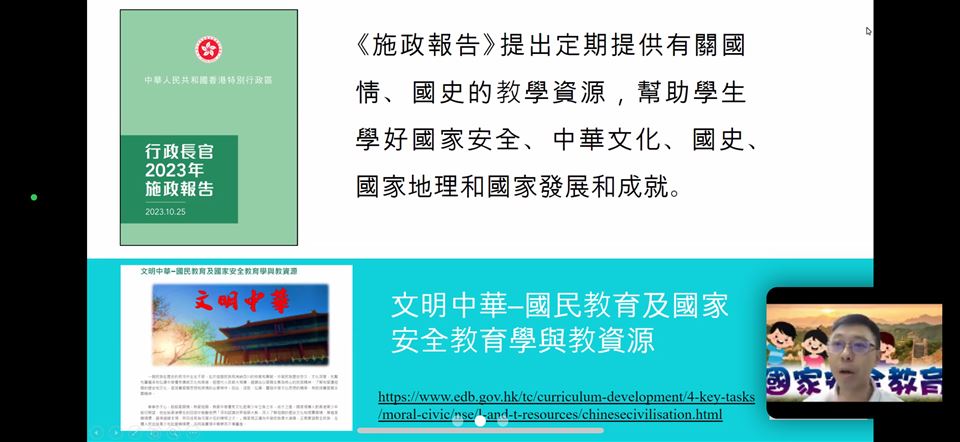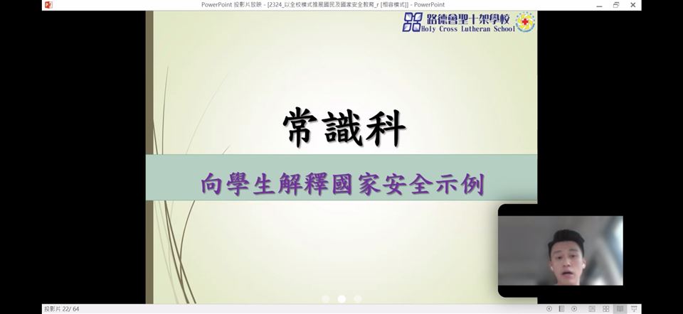 為了提升教師對國家安全的認識,加強認識法治和國情,明白維護國家安全的重要性,本校的國民教育主任在2023年4月18日(星期三)參加了由教育局與保安局為全港教師舉辦的《國家安全教育(線上)講座》,教育局特別邀請保安局局長鄧炳強先生為主講嘉賓。