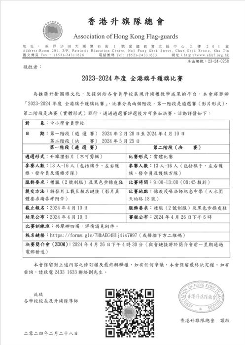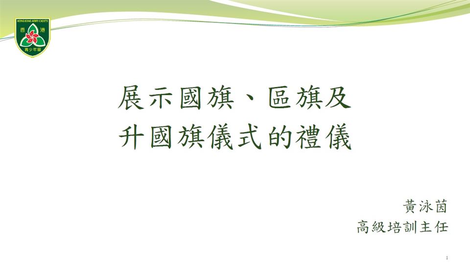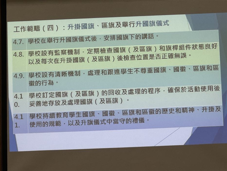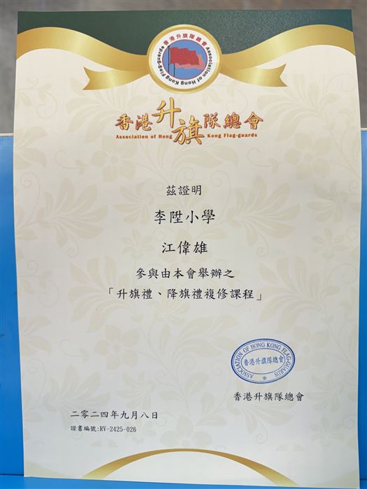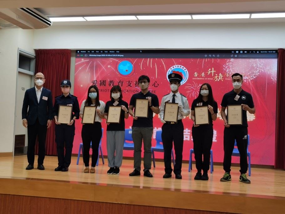 為了推廣升掛國旗文化,在校內能夠有效訓練升旗隊,本校的國民教育主任完成了16小時的校本旗隊導師培訓,並在2022年10月8日(星期六)出席結業禮。