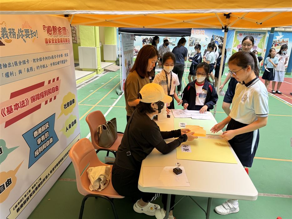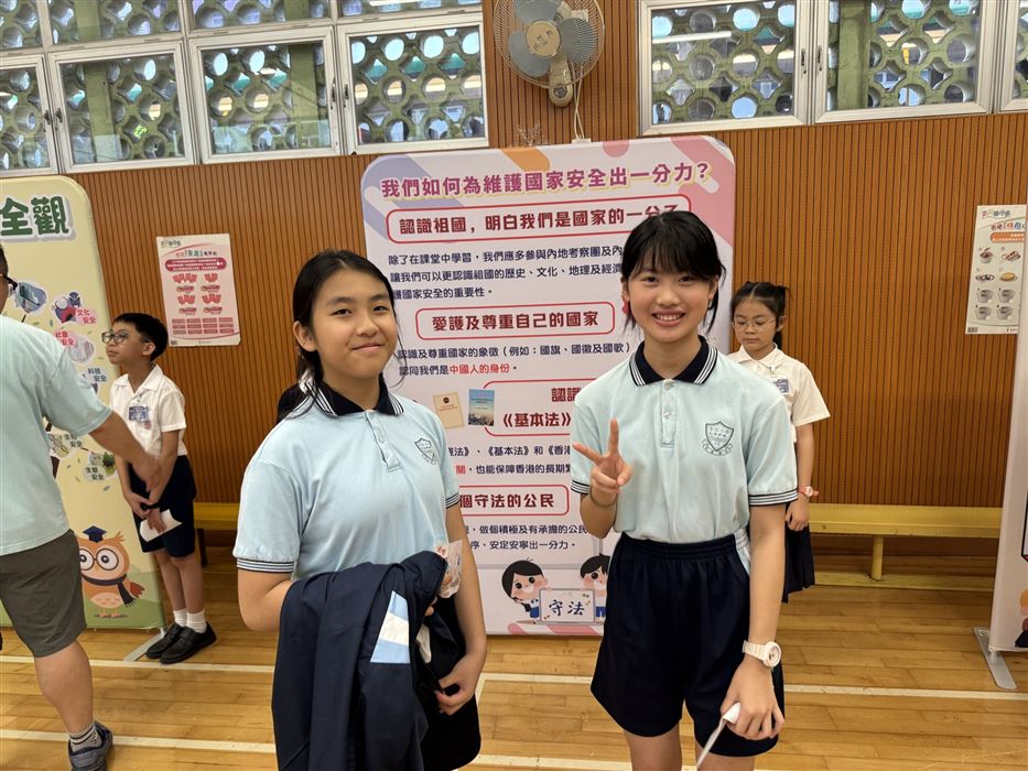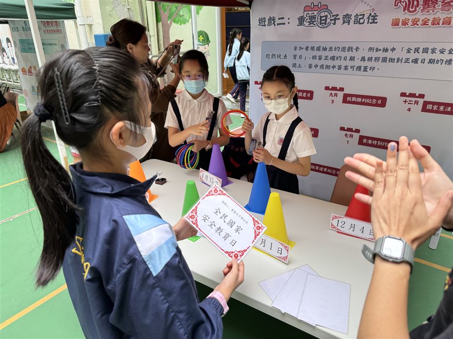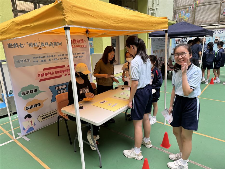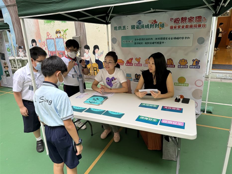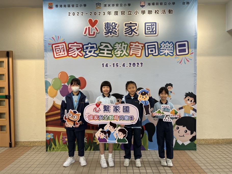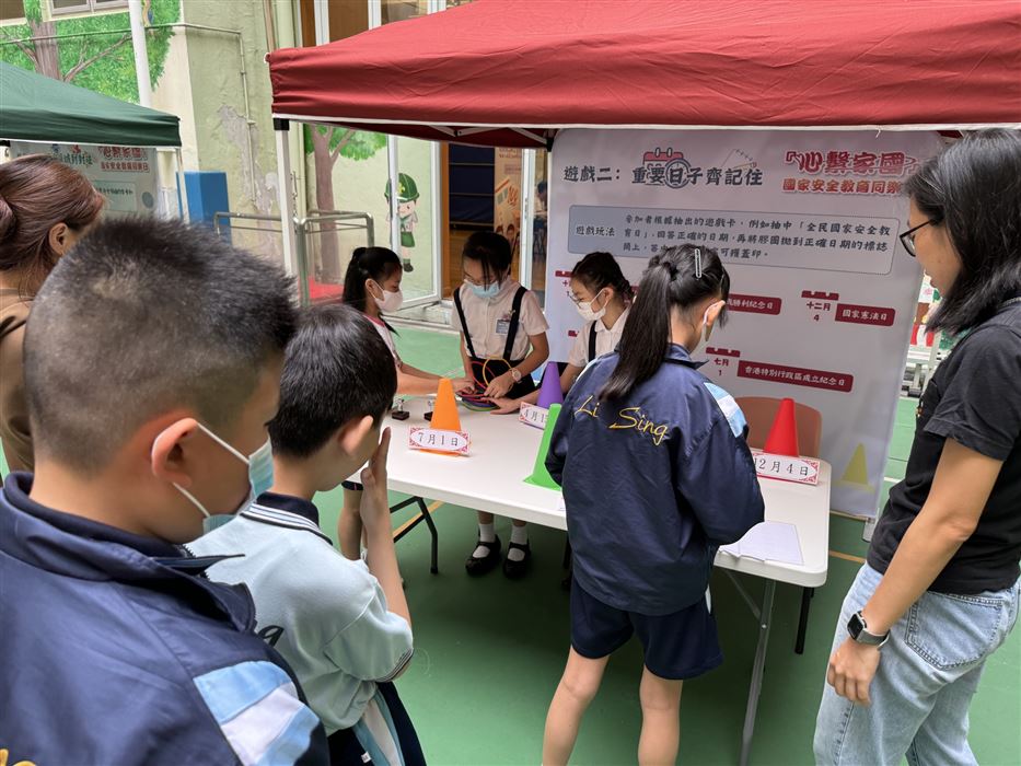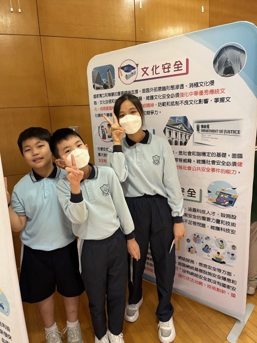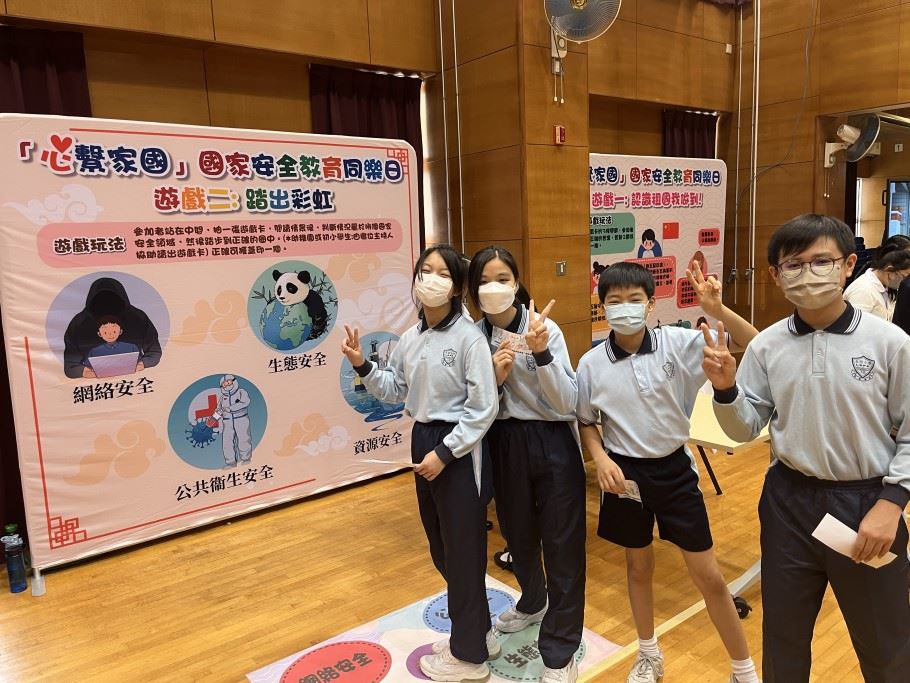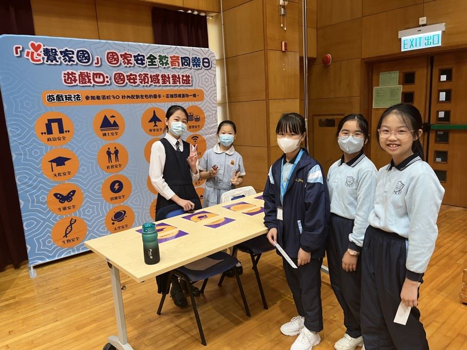 為加深學生對國家安全的認識,以及提升國民身份的認同,本校於2023年4月14日 (星期五) 參加了「心繫家國」—國家安全教育同樂日活動。是項活動特意安排給30位四至六年級學生參加,讓學生透過攤位遊戲及參觀展板的學習形式,提升學生對國家的認識。