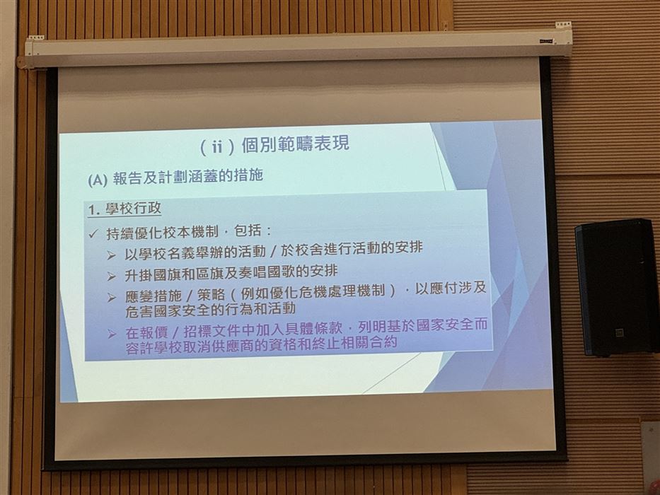 為持續推動國家安全教育,提升學生對國家安全的認識,2025年10月20日(星期一)本校邀請了中山大學法律系香港同學會副主席梁紹英先生,到本校舉行了一個國安法講座。