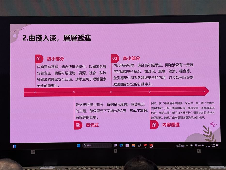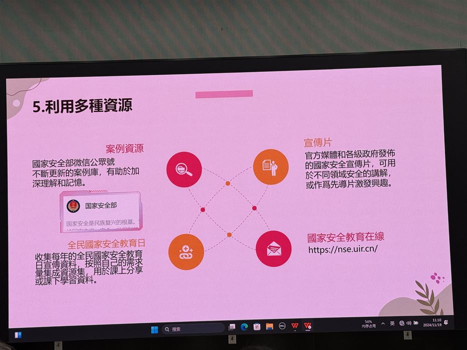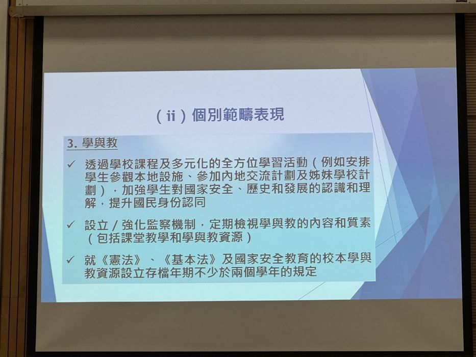 講座通過對學生內地交流計劃的重點解說,結合籌備活動及教學實例,從課程活動設計、教學資源及學習氛圍等多方面,幫助參與教師深入了解如何在自己學校繼續推動愛國主義教育及