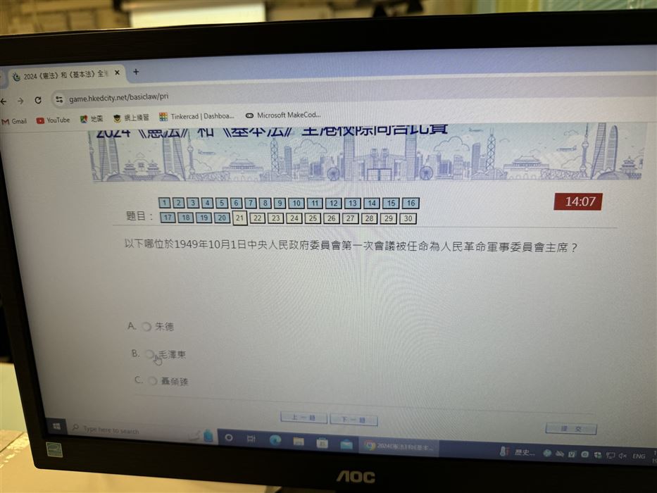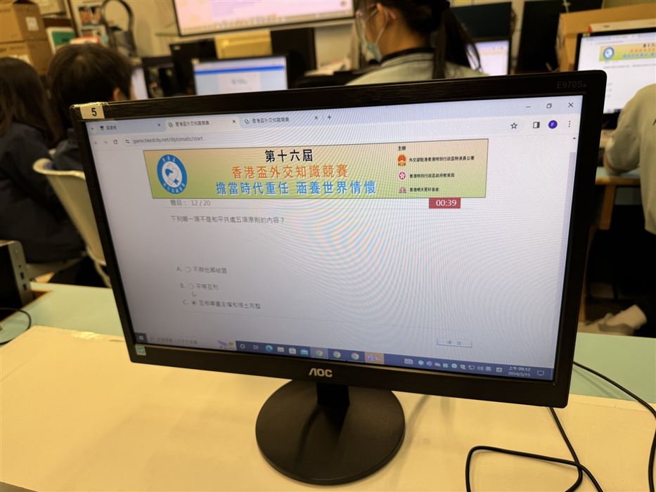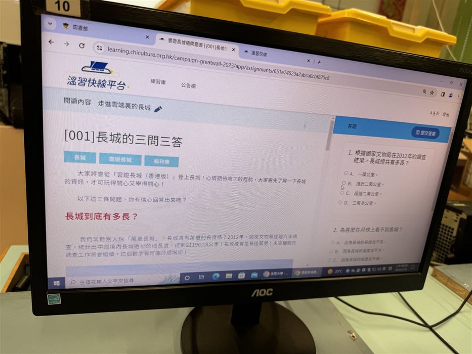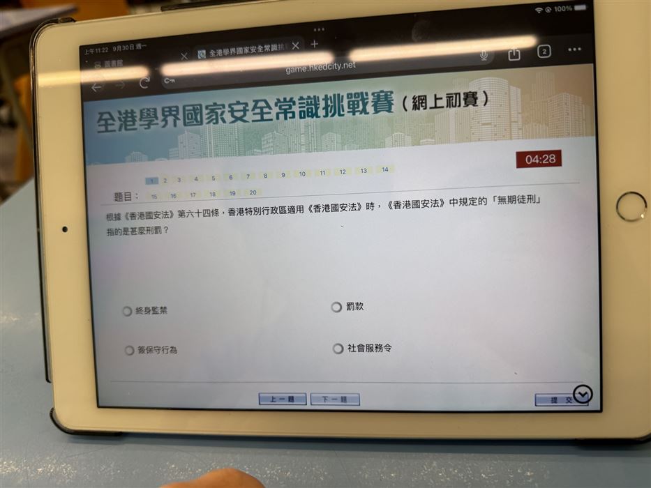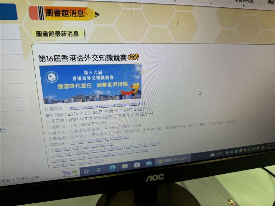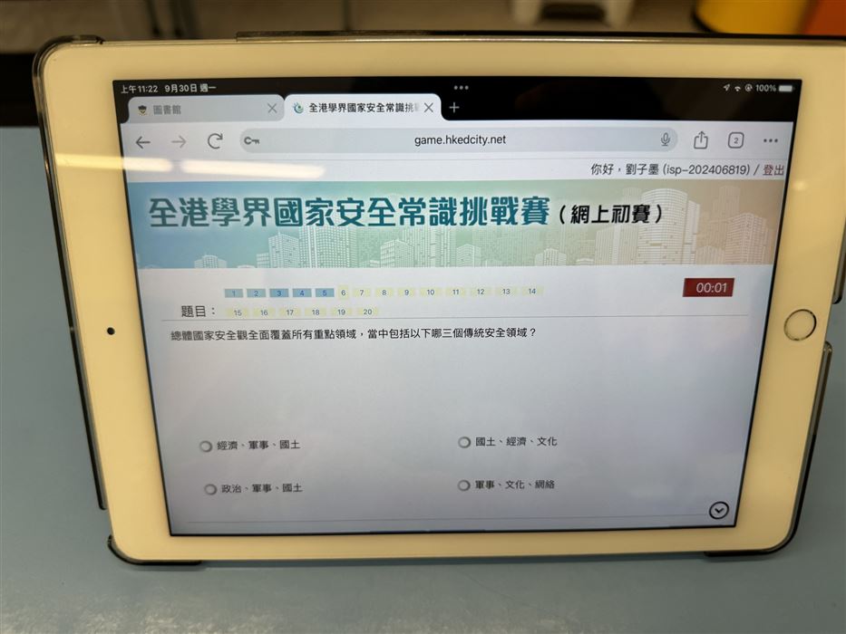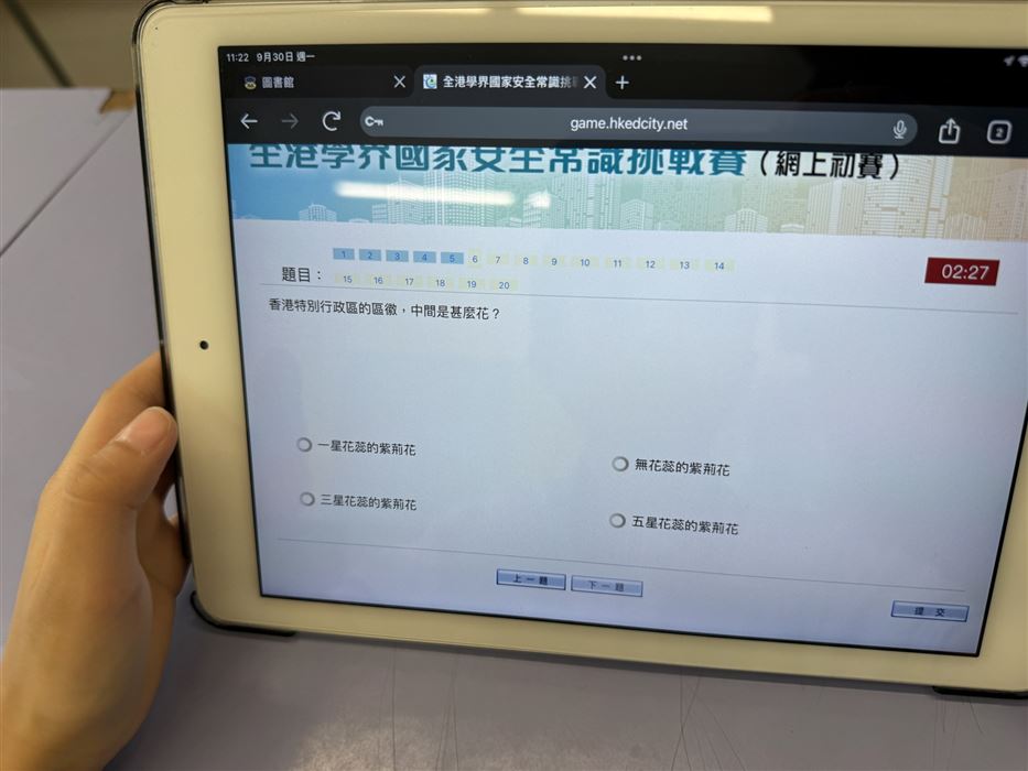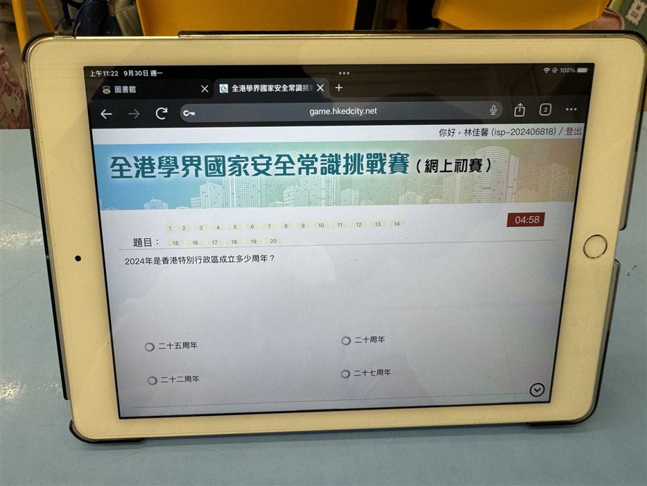 本校於2025年9月30日(星期一)至10月8日(星期二)會在圖書課進行網上初賽,學生須回答20條多項選擇題,限時5分鐘。