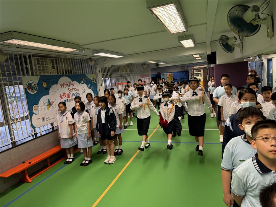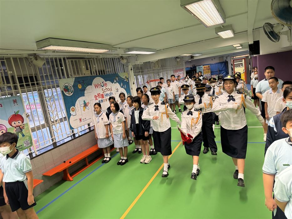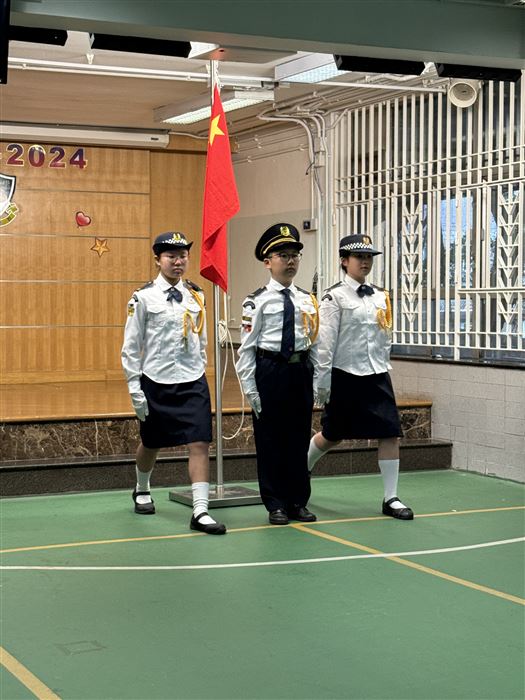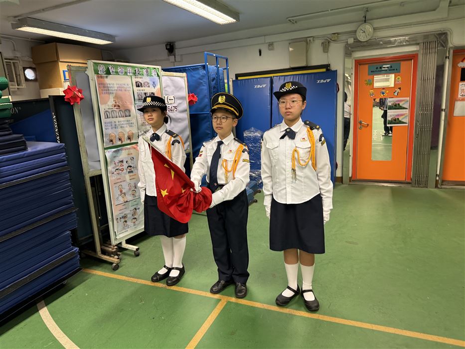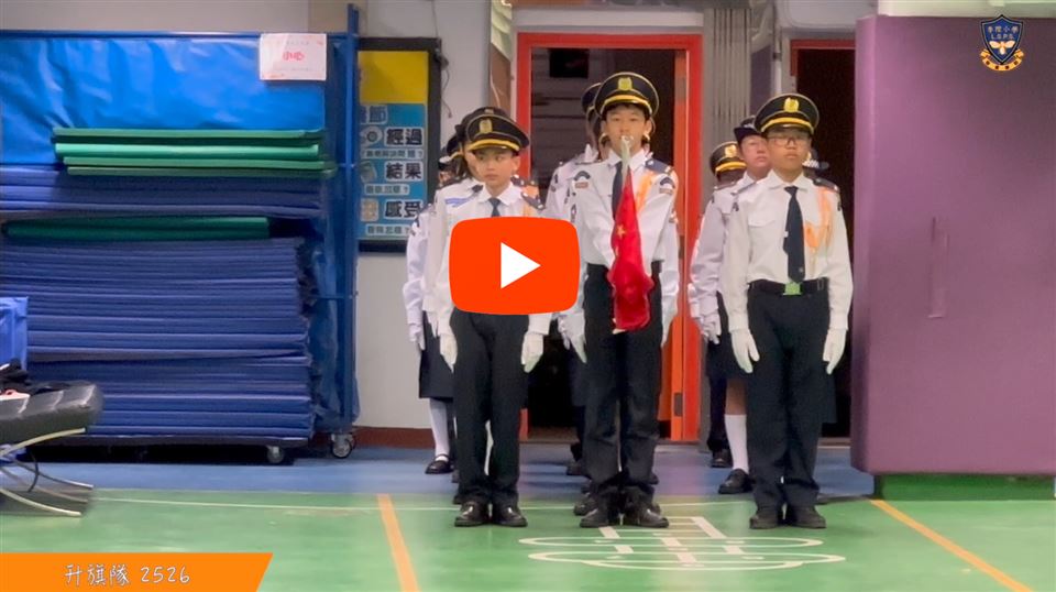 2025-2026年度升旗隊共有20位學生,他們主要來自四至六年級各班,每星期學校會進行升旗禮,隊員穿着整齊的制服進行儀式,隊員從升旗禮中學習升旗技巧和禮儀,加強對國家的認識和歸屬感,提升隊員的自信心及發掘隊員的領導才能。