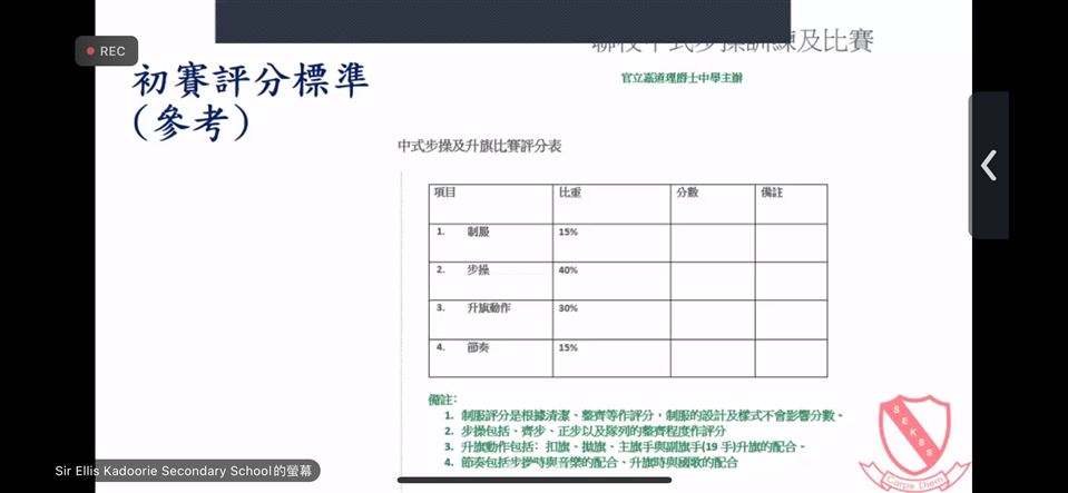 為讓本校的升旗隊隊員能提升步操、升旗、國家安全的基本認知,以及希望推廣升旗文化。負責本校升旗隊的梁偉雄主任及江偉雄老師會定期替升旗隊隊員報名參加專章考核。