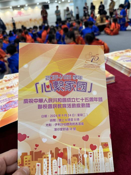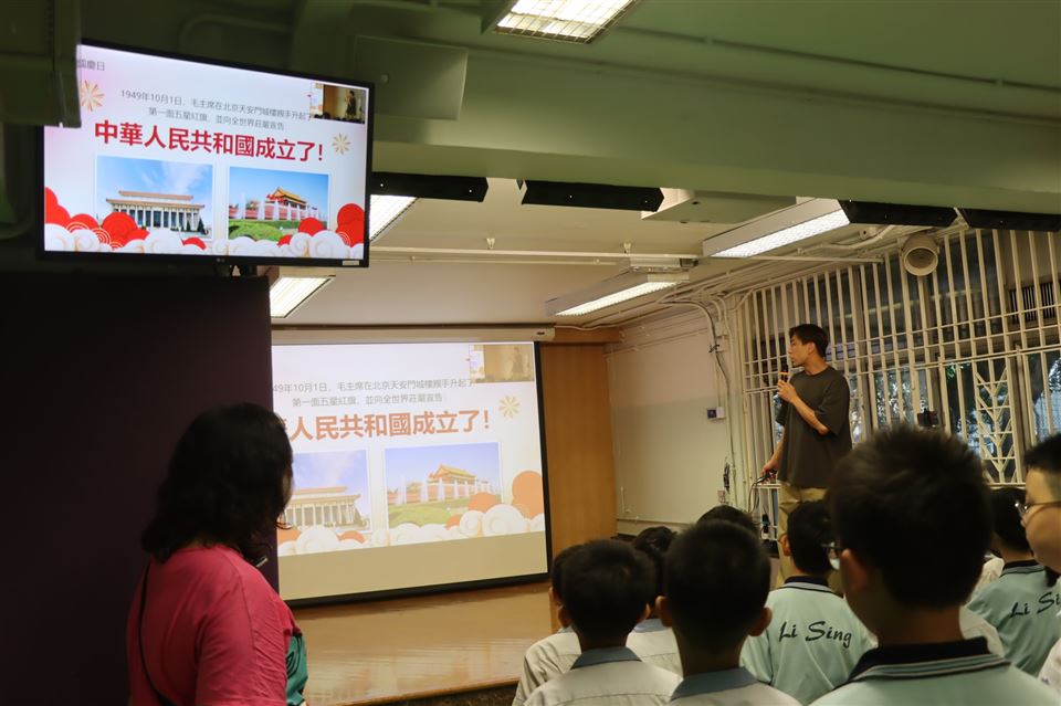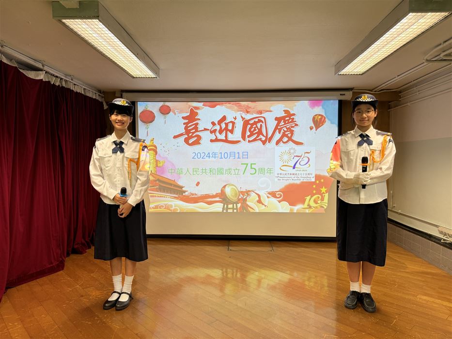 中華人民共和國的成立周年,一向是香港特別行政區的大事。2025年10月1日將迎來中華人民共和國成立76 周年,本校將舉辦以瞭解國家高質量發展為主題的網上學習活動,讓學生瞭解國家最新發展,以及中國式現代化的藍圖,讓他們將來為國家作出更大貢獻。