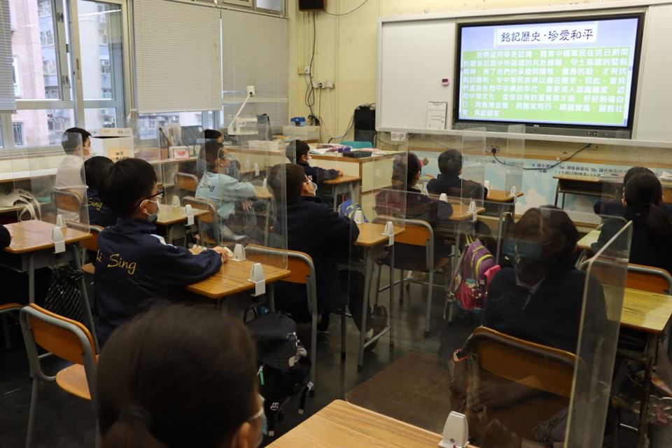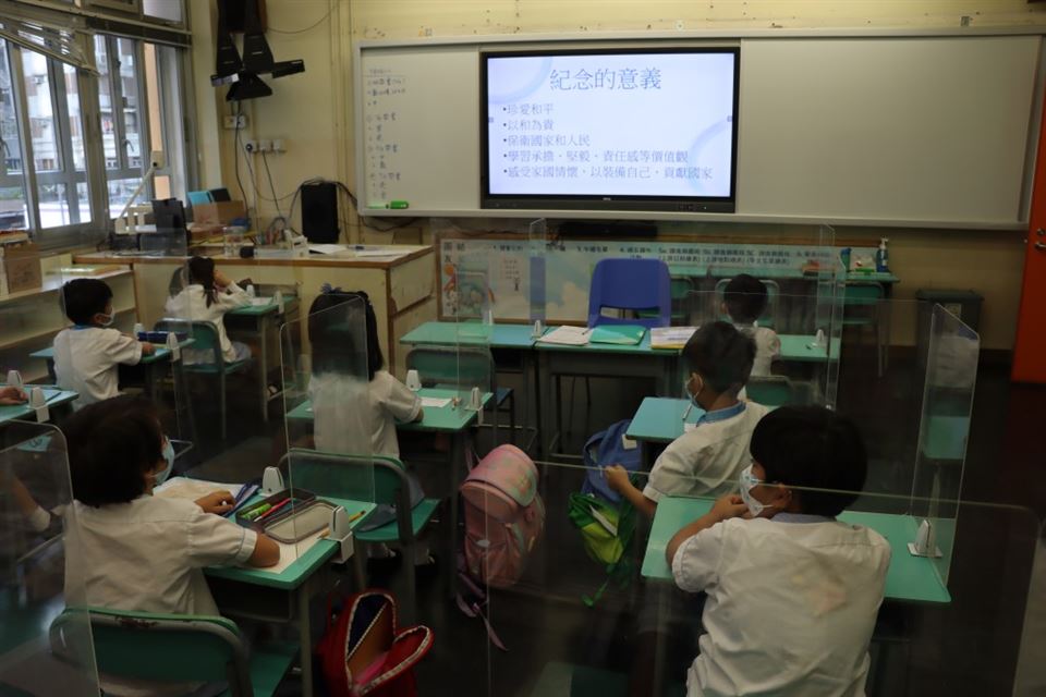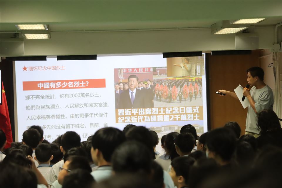 為銘記中國人民抵抗日本侵略,緬懷先烈和死難同胞,全國人大常委會2014年將每年9月3日訂為中國人民抗日戰爭勝利紀念日,特區政府自當年起,在香港舉行相應的官方紀念活動。紀念儀式早上八時在香港大會堂紀念花園舉行紀念儀式,退伍軍人團體代表等亦有參與。北京天安門廣場早上9時舉行抗戰勝利80周年閱兵,這次閱兵訓練場地首次對媒體開放,將按閱兵式和分列式兩步驟進行,共約70分鐘,全校學生一起觀看直播,禮堂設有《從戰爭到和平》抗戰歷史專題展覽,共有11塊展板。