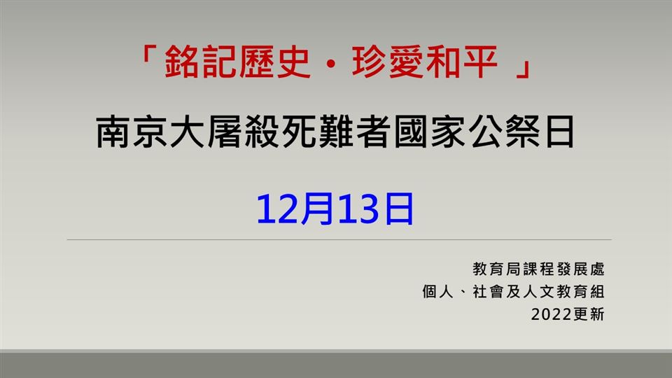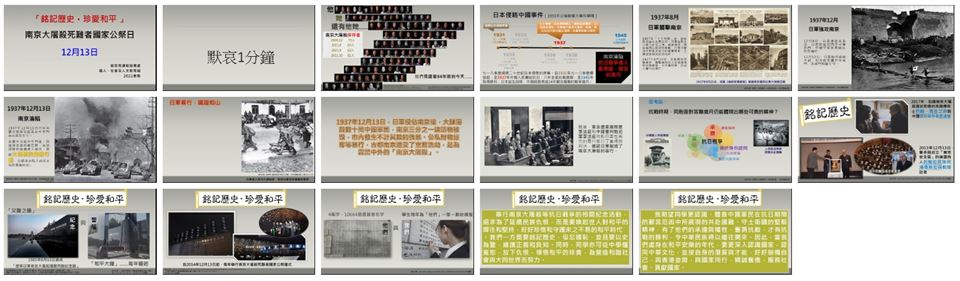 本校在12月13日,安排師生於當天早會默哀1分鐘,與全國同胞一起參與悼念。一起悼念所有在南京大屠殺及抗日戰爭中遇害的死難同胞,