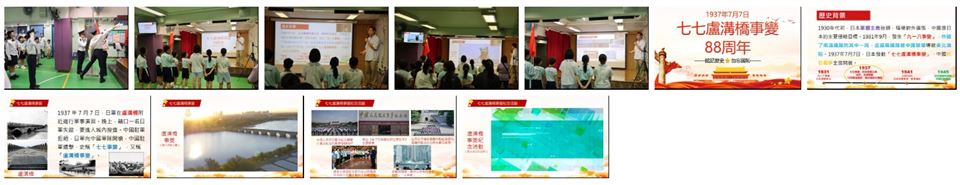 為了讓學生理解抗日戰爭和「七七盧溝橋事變」的歷史,好好珍惜和守護來之不易的和平時代。我們一方面要銘記歷史,毋忘國恥,並且要以史為鑒,維護正義和良知,維護國家安全。本校在2025年7月9日舉行了升旗禮以及「七七盧溝橋事變」國旗下講話。