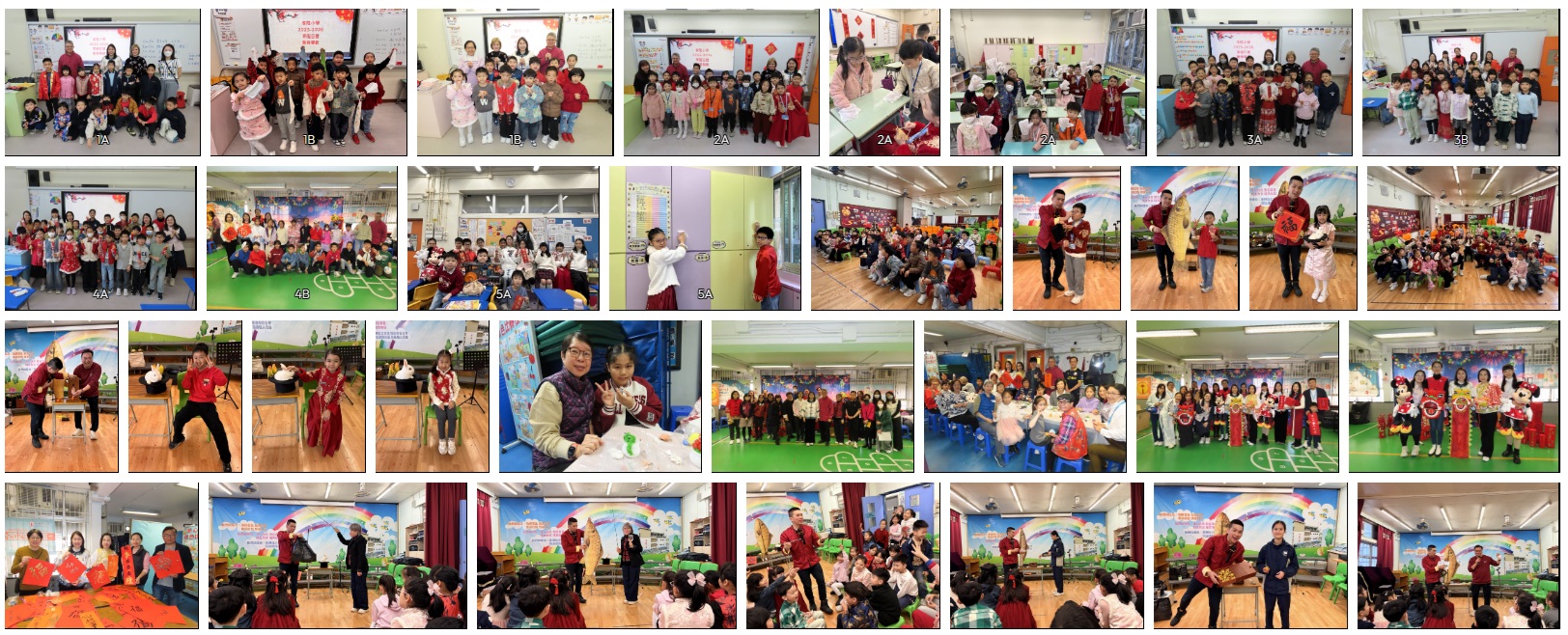 農曆新年是中國人一大喜慶節日,到處洋溢着歡樂氣氛。為了加強學生對中國文化的認識,本校於2026年2月13日舉行華服日暨新春聯歡活動,學生參加製作臉譜、香包、繩結、麵粉公仔等攤位遊戲,感受中華文化的細膩與趣味。長者學苑義工教授學生製作馬年賀年輕黏土擺設,家教會委員亦為學生寫揮春,把節日氣氛帶進校園。學生亦欣賞古彩戲法,現場目睹師傅的高超技藝,讓學生驚喜連連。學生進行公益金的「環保為公益」慈善清潔活動,在課室進行大掃除活動,學習中國農曆新年傳統禮儀。學生亦於1月21日參加拓印工作坊,製作「福」字、「陞」字、「祝李步步高陞」揮春,把祝福帶回家。
