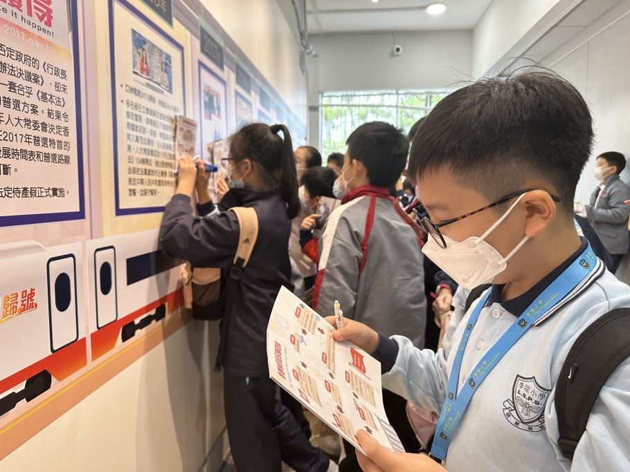 為了為增進學生認識國家的國情,加強學生對國家的歸屬感,本校參加了官立小學聯校活動──「『心繫家國』──憲法及基本法全方位學習」。是項活動讓學生以全方位學習的形式,在2022年12月5日參觀了「愛國教育支援中心」,提升學生對《憲法》和《基本法》的認識,以及一國兩制的重要概念。
