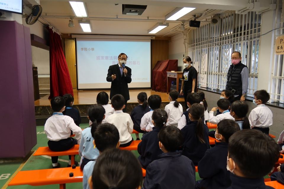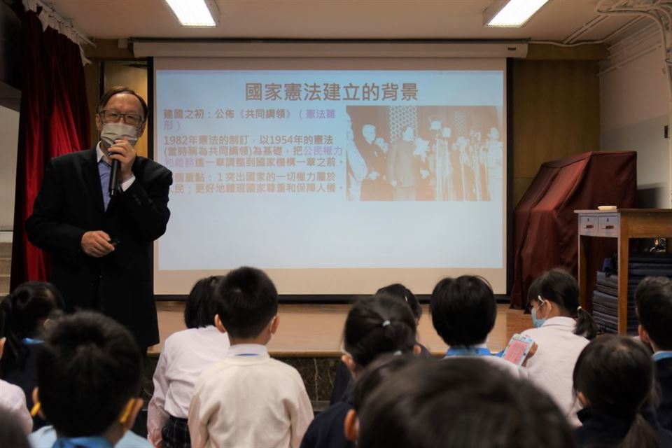 12月4日是「國家憲法日」,為持續推動《憲法》、《基本法》和國家安全教育,提升學生對《憲法》和《基本法》的認識,以及一國兩制的重要概念。本校在12月5日邀請了梁炳華博士到本校舉行了一個「憲法與基本法」講座。