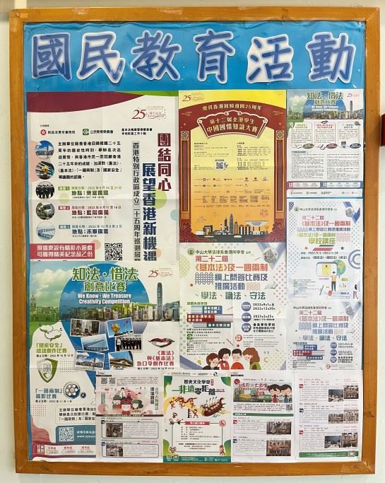 為了促進學生更容易接收國民教育活動的資訊,我們除了定期發放有關活動的電了通告,還特別製作了國民教育資訊壁報板,讓學生可以容易選擇自己有興趣的活動報名參加。