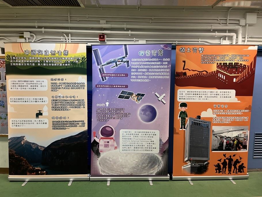 「心繫家國」—「國家教育展覽:遊走展覽與科技•探索知識」旨在讓初小學生通過傳統的展板展示配合創新的AR擴增實境活動,透過不一樣的學習模式,從多角度增加對國家的認識,從而提升他們對國民身份的認同。 此外,活動亦加深學生對現今AR擴增實境科技發展的認識,培養學生對創新科技的興趣,使學生能夠緊隨世界轉變的步伐。本校在2022年11月28 – 12月2日在禮堂舉辦了國家教育展覽,展出祖國在文化、藝術、天文和地理等範疇的發展及成就為主題的展板,以深入淺出的方法向學生介紹祖國的成就。學生可以在小息時段到禮堂進行活動,配合展覽主題的擴增實境問答遊戲(AR Game),寓科技遊戲於學習國家發展。