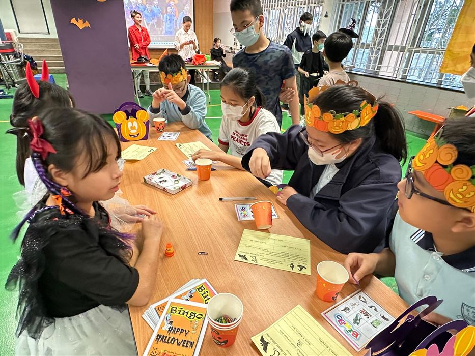 ‘BINGO! I have candies!’ Students played Halloween BINGO excitedly with one another.