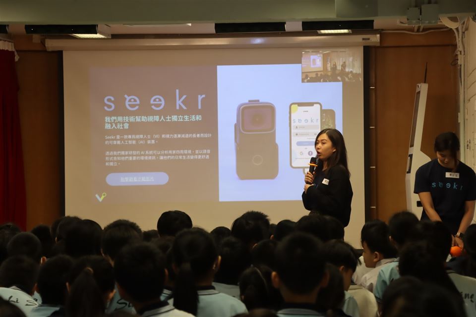 為增加學生對人工智能的認識及生活的應用,本年度本校運用 「奇趣IT識多啲」計劃,在2025年4月30日舉行了人工智能分享講座。講座主題是「人工智能眼鏡如何協助視障人士」,認識和體驗Seekr 智能眼鏡的運作和應用如何解決視障人士平日出行遇到的困難。學生透過講座認識和體驗人工智能如何幫助不同有需要人士的日常生活。