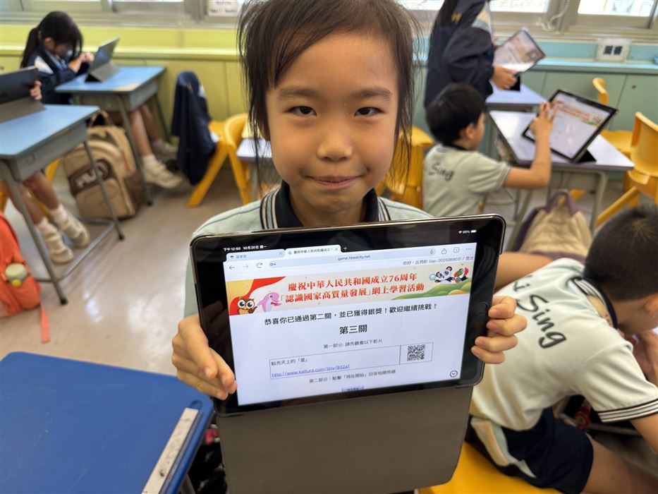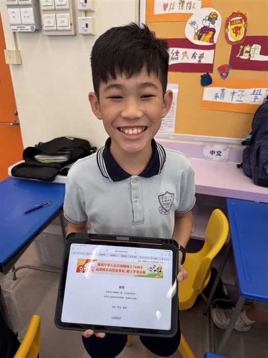 中華人民共和國的成立周年,一向是香港特別行政區的大事。2025年10月1日將迎來中華人民共和國成立76 周年,本校將舉辦以瞭解國家高質量發展為主題的網上學習活動,讓學生瞭解國家最新發展,以及中國式現代化的藍圖,讓他們將來為國家作出更大貢獻。