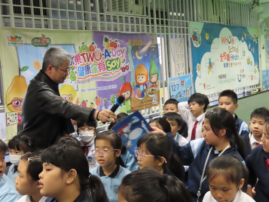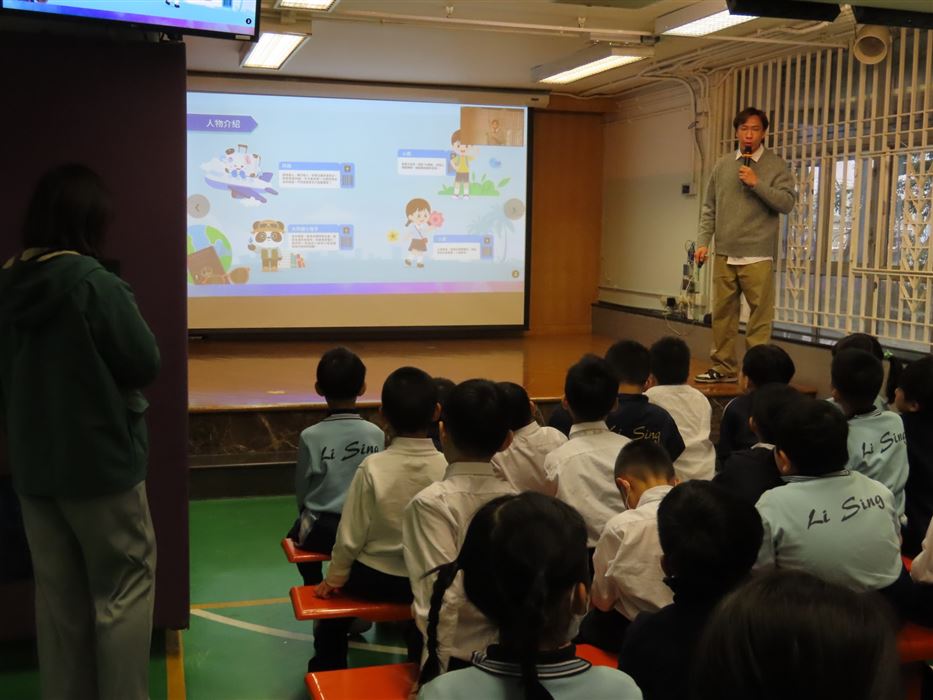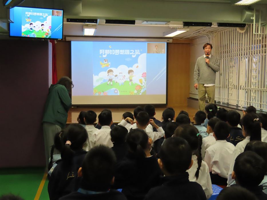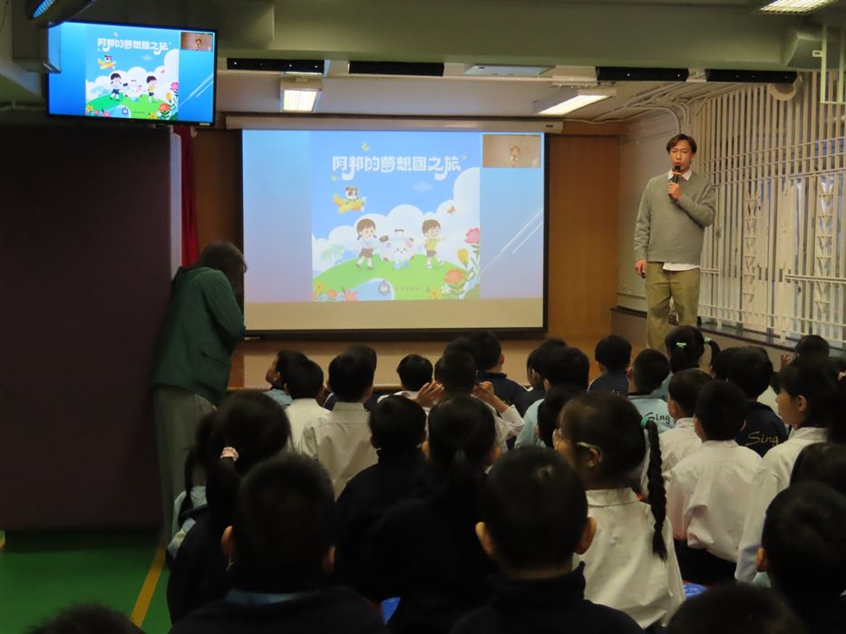 為持續推動國家安全教育,提升學生對普及國家領事保護與外遊安全的認識,進而增強他們對國家的歸屬感,本校的圖書館江偉雄老師在2025年11月19日(星期三)周會時段在全校舉行了一個「阿邦的夢想國之旅」 繪本故事分享講座。