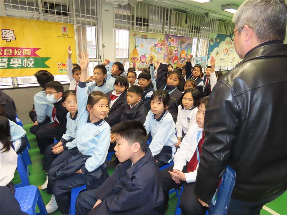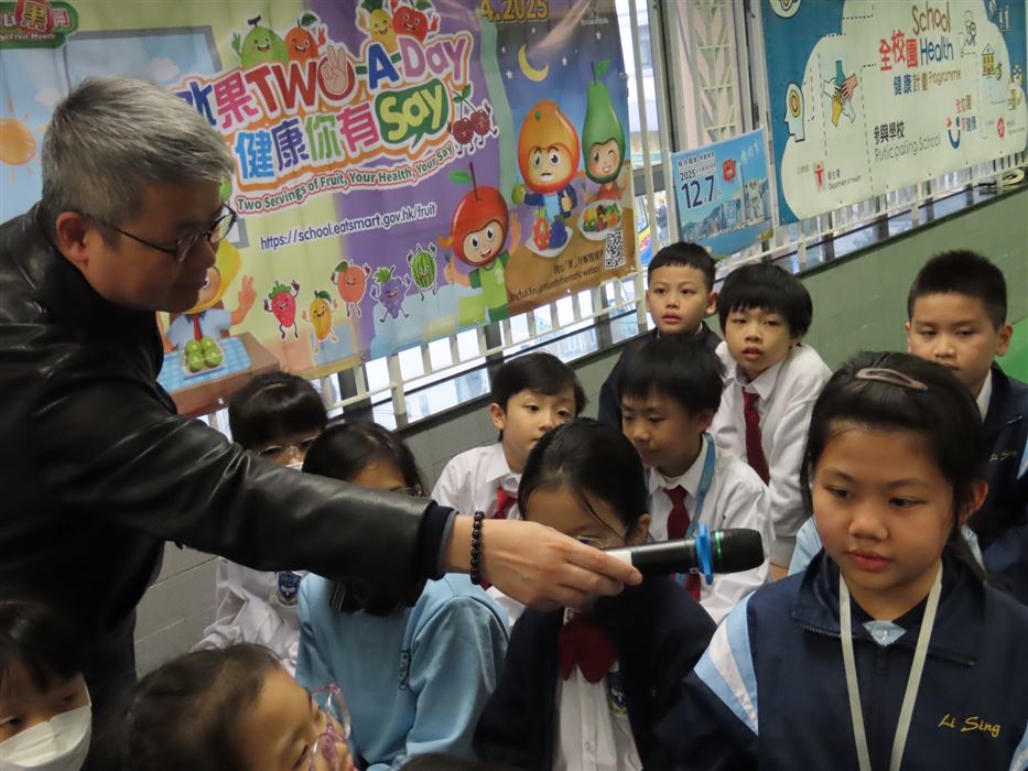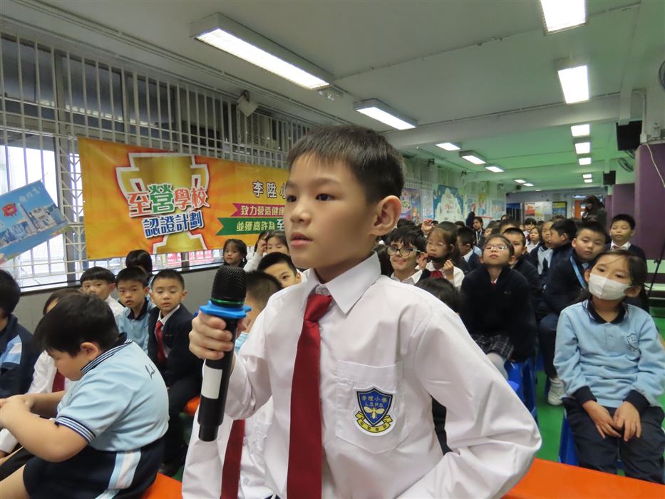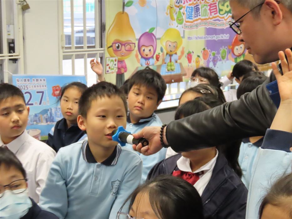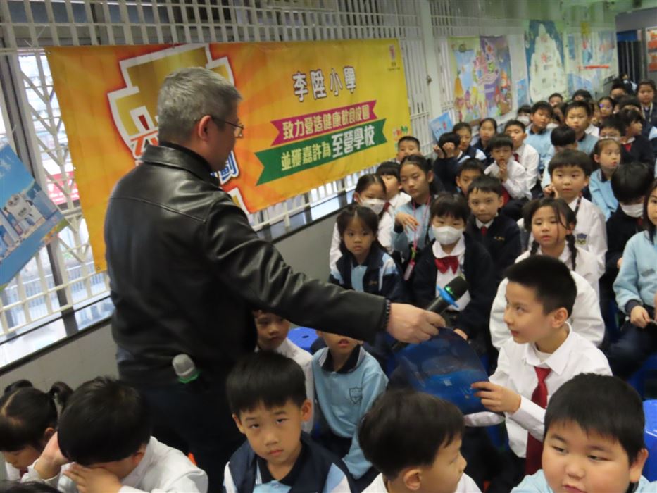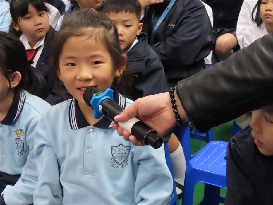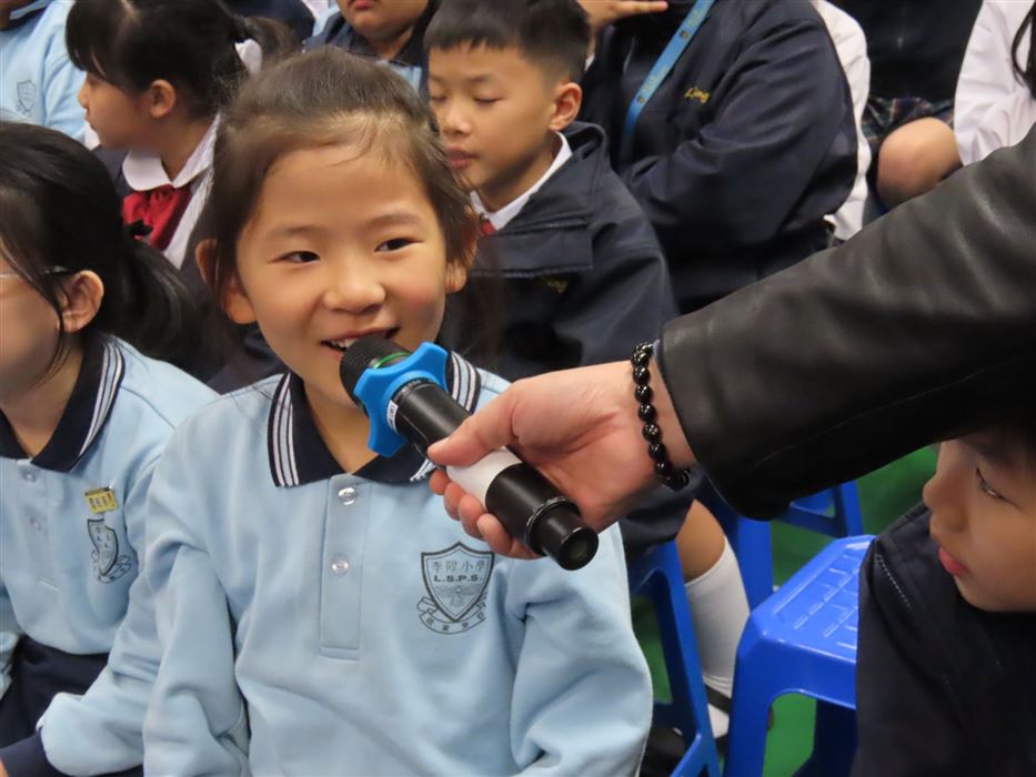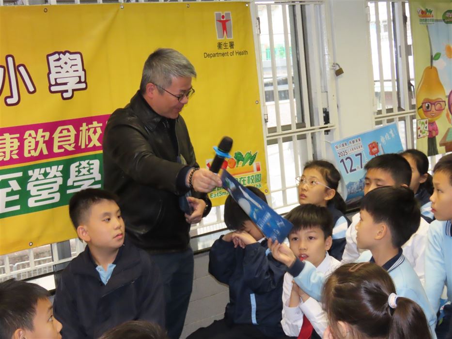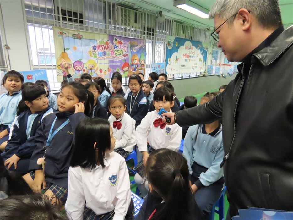 江老師在開始講故事前,詢問學生們曾否去過旅行,大家紛紛告訴老師自己去過的地方。江老師以繪本主角「1868大使——阿邦」與朋友小森、小悠的旅程為主線,講述他們在旅行中遇到的各種情境,如遺失旅行證件、意外受傷等,以分享外遊安全小貼士,讓孩子從小學習旅行中遇到困難的應對方式,並以有獎問答形式與學生親切互動。
