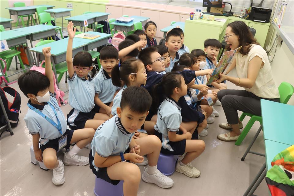 每逢星期四的早上的8:00a.m.-8:10a.m.我們都會有家長與學生分享故事,學生們都聽得很投入,